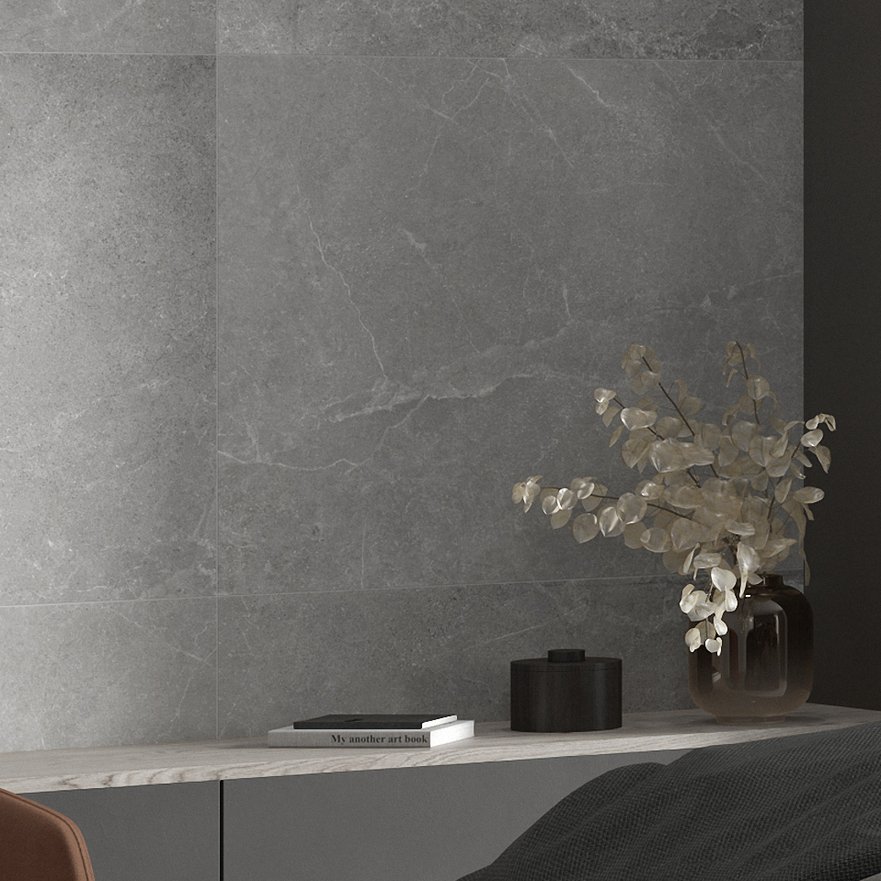 Son grand format et ses bords rectifiés permettent une pose aux joints fins, créant un rendu harmonieux et épuré.