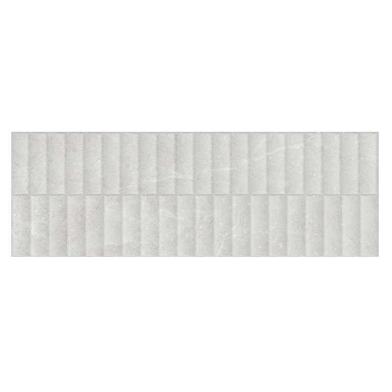 Donnez du relief et du rythme à vos murs avec la faïence Storm Relief 40x120 cm. Ce carrelage mural rectifié à finition mate séduit par son élégant motif rectangulaire en léger relief, qui capte subtilement la lumière pour créer un effet 3D raffiné.