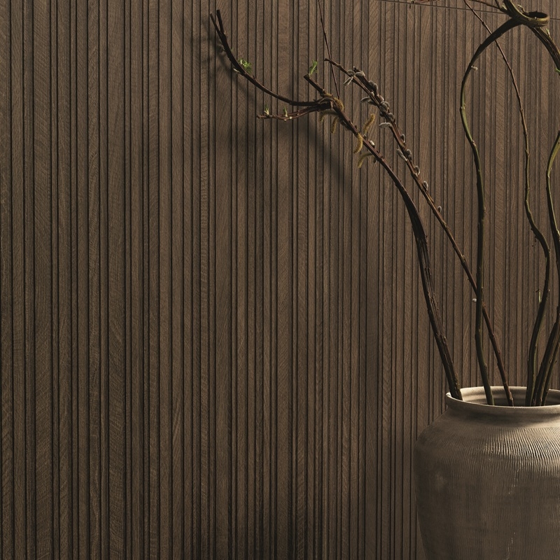 Enfin, le coloris Wengè, plus sombre et dense, met en valeur le motif 3D par un contraste marqué.