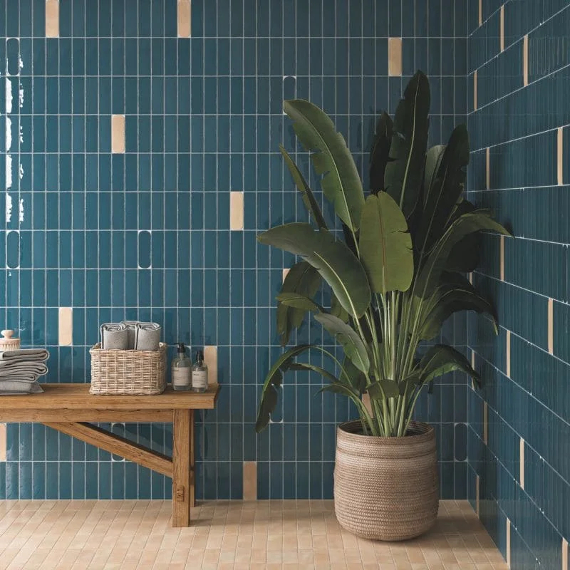 Inspiré des zelliges marocains, le carrelage mural Casablanca 5x15 cm combine élégance artisanale et finitions contrastées pour sublimer les murs d’une salle de bains, cuisine ou boutique.