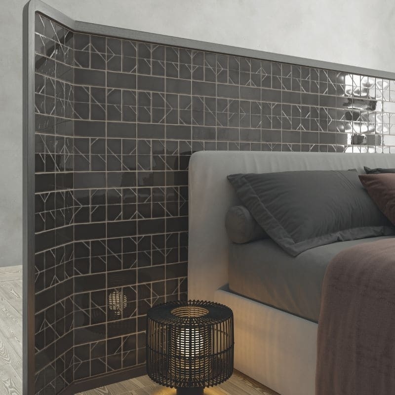 Deux finitions se déclinent en six teintes : les surfaces lisses « Yoko » et les motifs texturés « Origami ». Disponibles en Daisy (blanc cassé), Pewter (gris doux), Moss (vert naturel), Bordo (bordeaux profond), Marine (bleu intense) et Onix (noir minéral), ces carreaux offrent une palette équilibrée entre tons neutres et accents colorés.