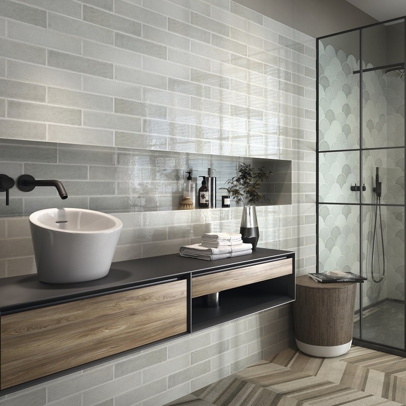 Sa jointure régulière apporte un mélange entre les carreaux et les couleurs très contemporaines avec une fabrication artisanale.