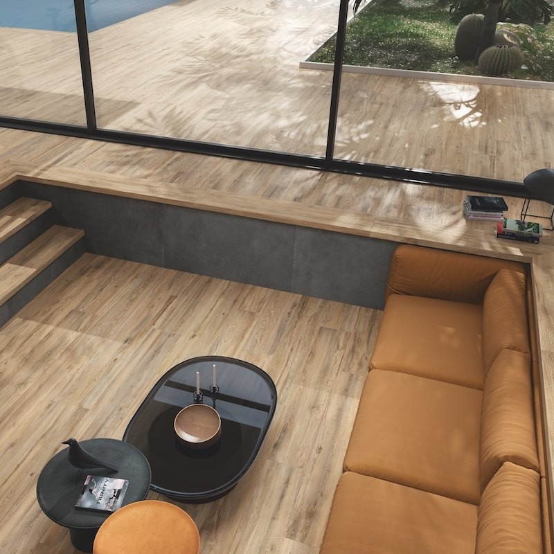 Nous avons réussi la prouesse de reproduire fidèlement la texture et les nuances de ce bois noble sur un carrelage de très haute qualité.