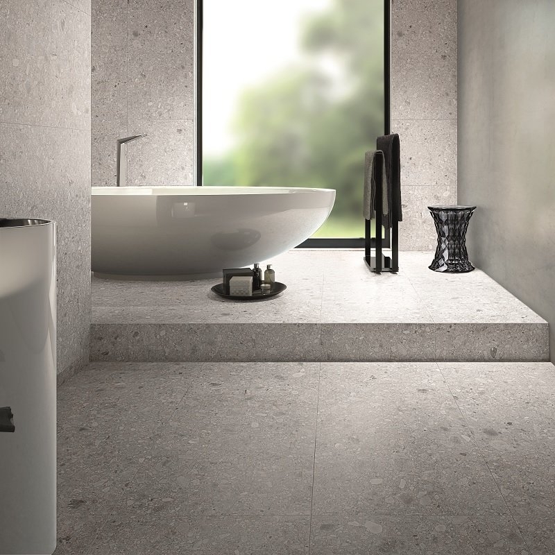 La collection Pietre di Paragone de Casalgrande Padana propose un grès cérame effet pierre, alliant esthétique naturelle et robustesse.