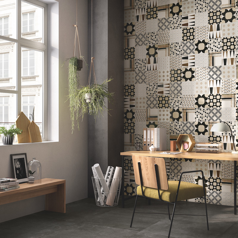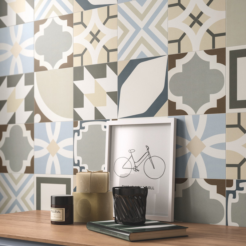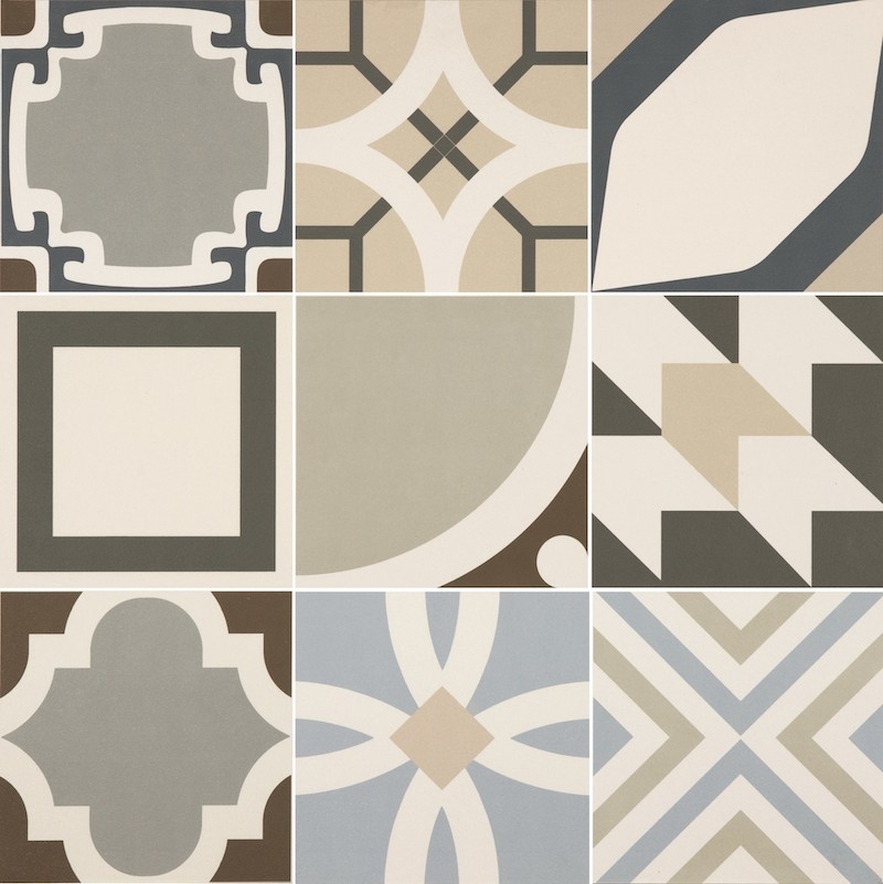 Optez pour la collection Bedecor, un carrelage aspect carreaux de ciment aux couleurs et aux contrastes uniques. Chaque motif est composé d'un mélange de 9 carreaux de ciment décorés.