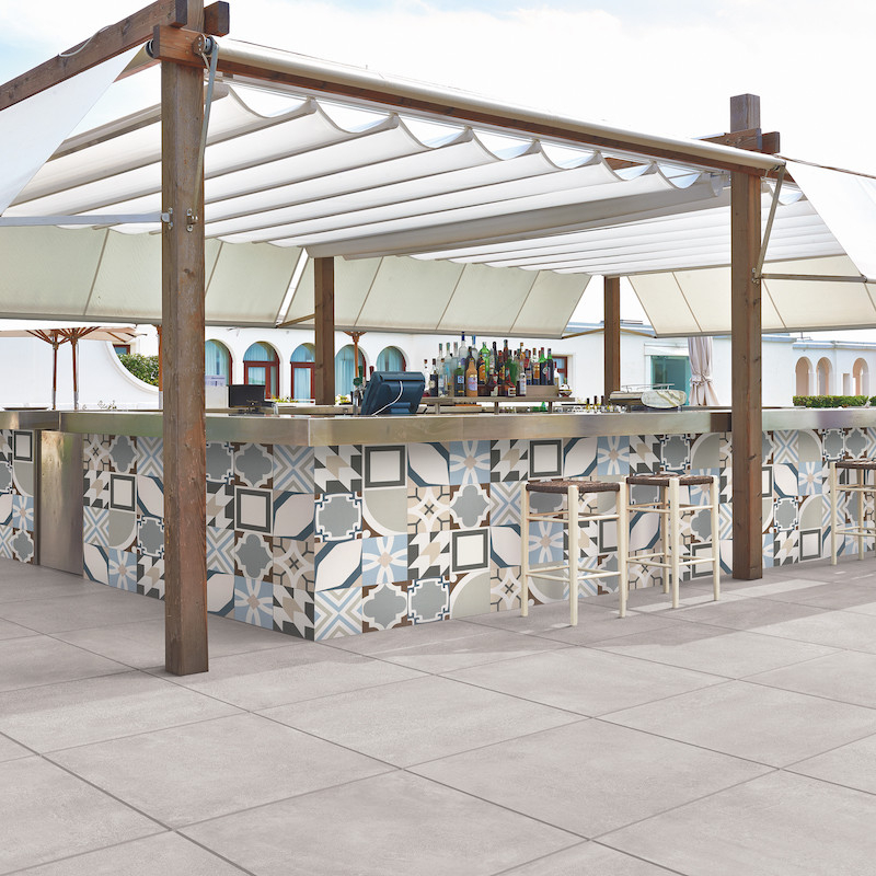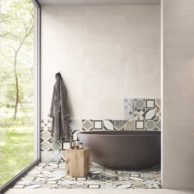 Le carrelage Concrete mix est totalement mat, tandis que le majolica mix est à la fois mat et brillant, créant ainsi une surface tactile.