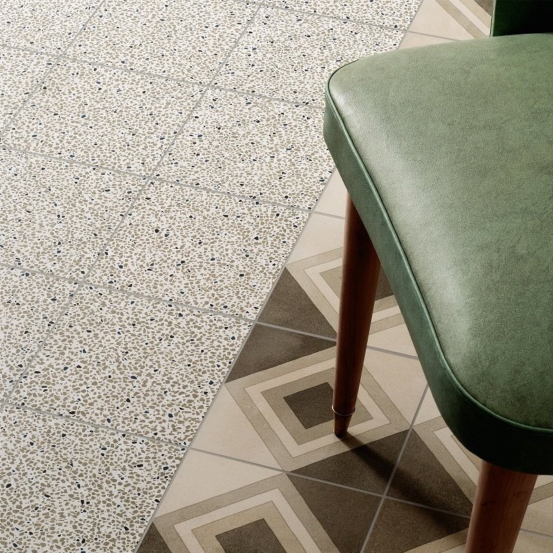 Si vous recherchez un carrelage grès cérame, n'hésitez plus car le modèle Cementine aspect terrazzo est pour vous. De dimensions 20 cm x 20 cm, il va dynamiser votre intérieur et y ajoutera une touche de modernité.