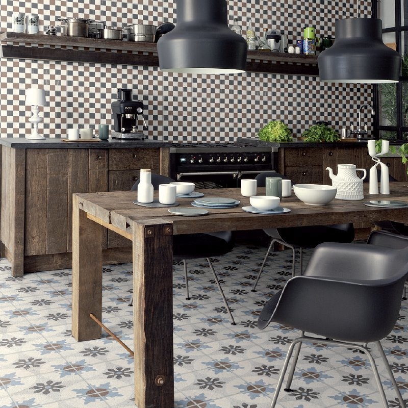 Carrelage imitation carreaux de ciment bleu marron blanc Cementine grès cérame