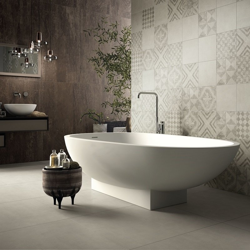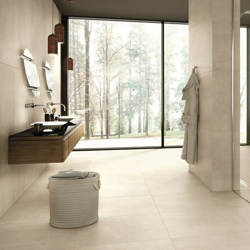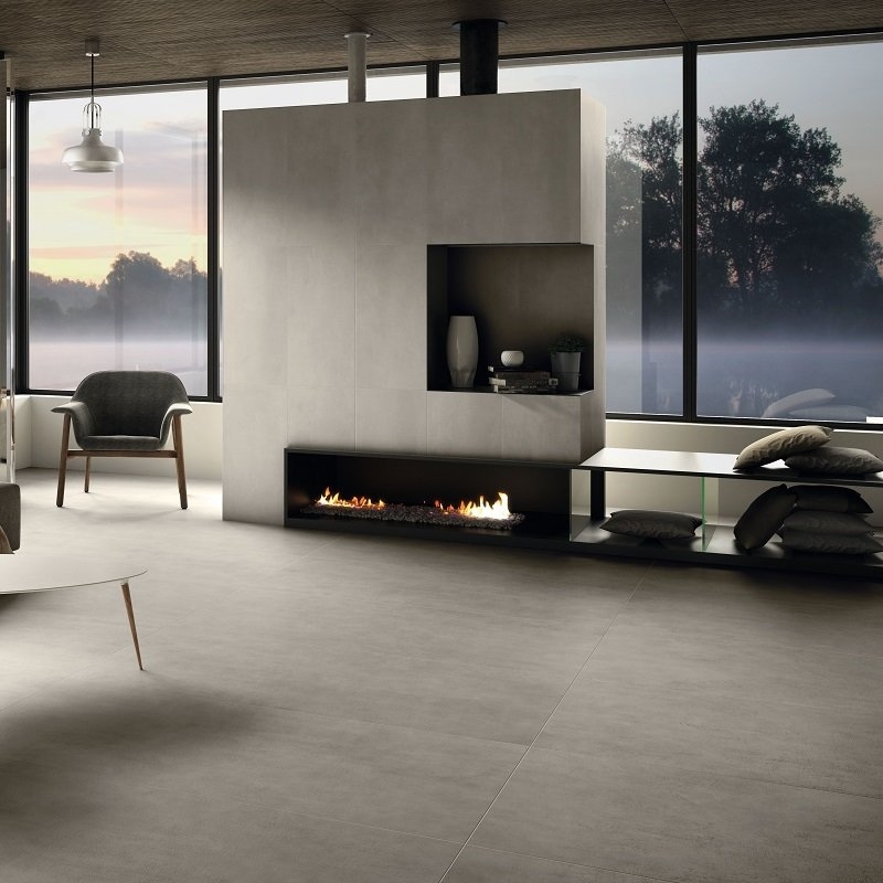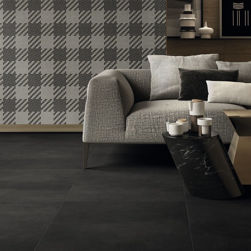 Disponible en plusieurs formats modulaires et teintes minérales (Dark, Ivory, Mud, Pearl, Sand), cette collection permet de composer des espaces sobres et élégants dans un esprit contemporain ou industriel. Son aspect ciment structuré, stable à la lumière, allie performance technique et raffinement visuel.