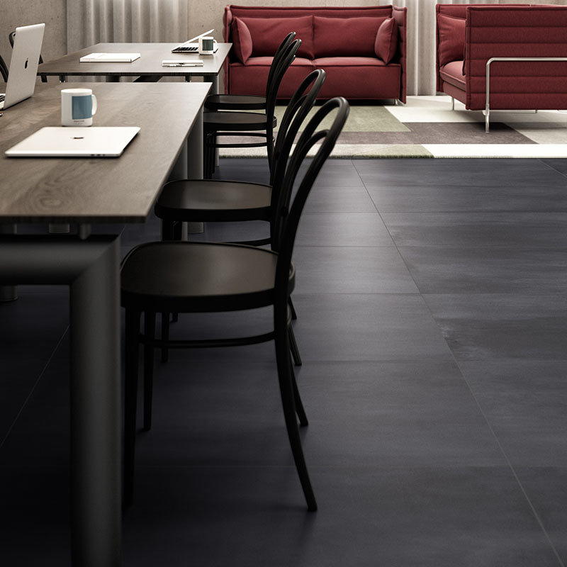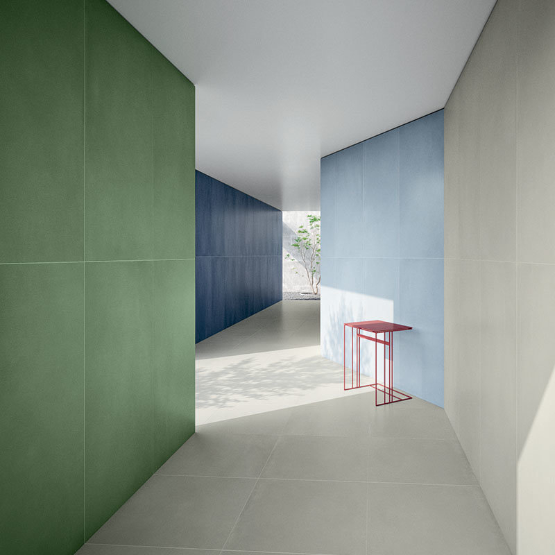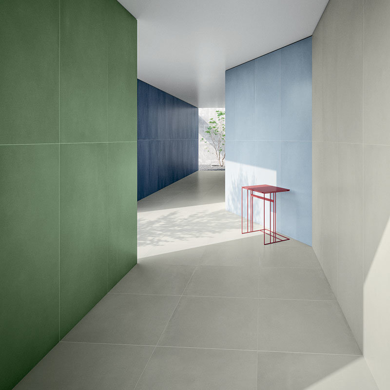 Le carrelage R-Evolution combine l’élégance brute du béton à une palette de couleurs contemporaines. Il transforme chaque espace en un lieu moderne, créatif et visuellement harmonieux.
