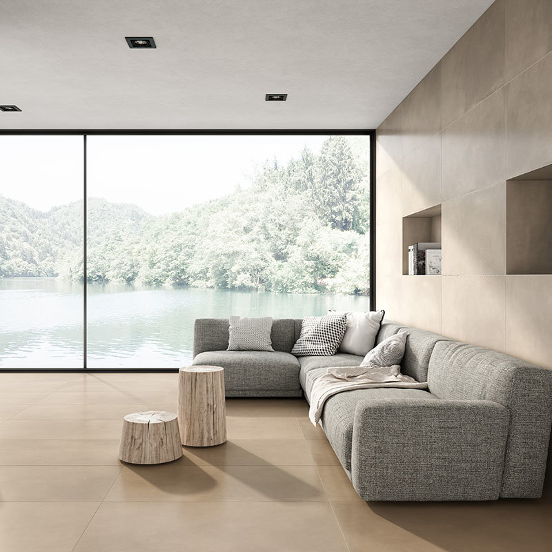 Inspiré des surfaces en béton ciré, le carrelage R-Evolution de Casalgrande Padana apporte un style urbain et minimaliste à tous vos espaces. Grâce à sa finition mate et sa surface lisse, il s’adapte aussi bien aux sols qu’aux murs, en intérieur comme en extérieur.