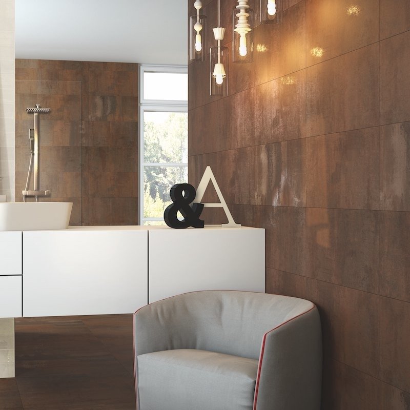 Avec ce carrelage effet métal oxydé, vous obtiendrez des effets et des jeux de lumière fidèles au métal brut, apportant ainsi une touche urbaine chic à votre intérieur.