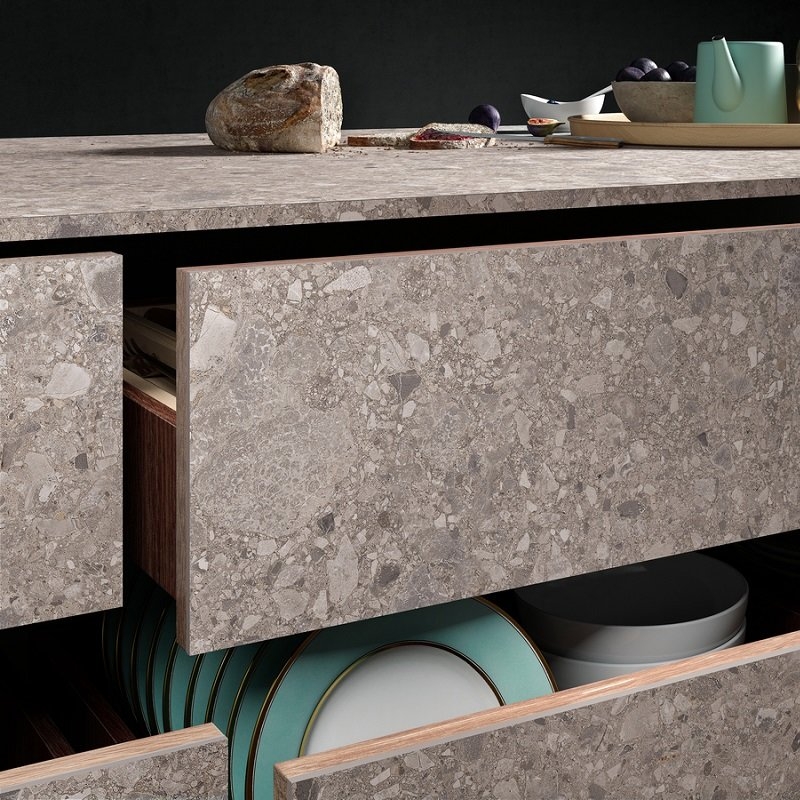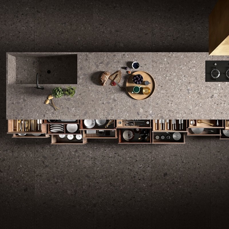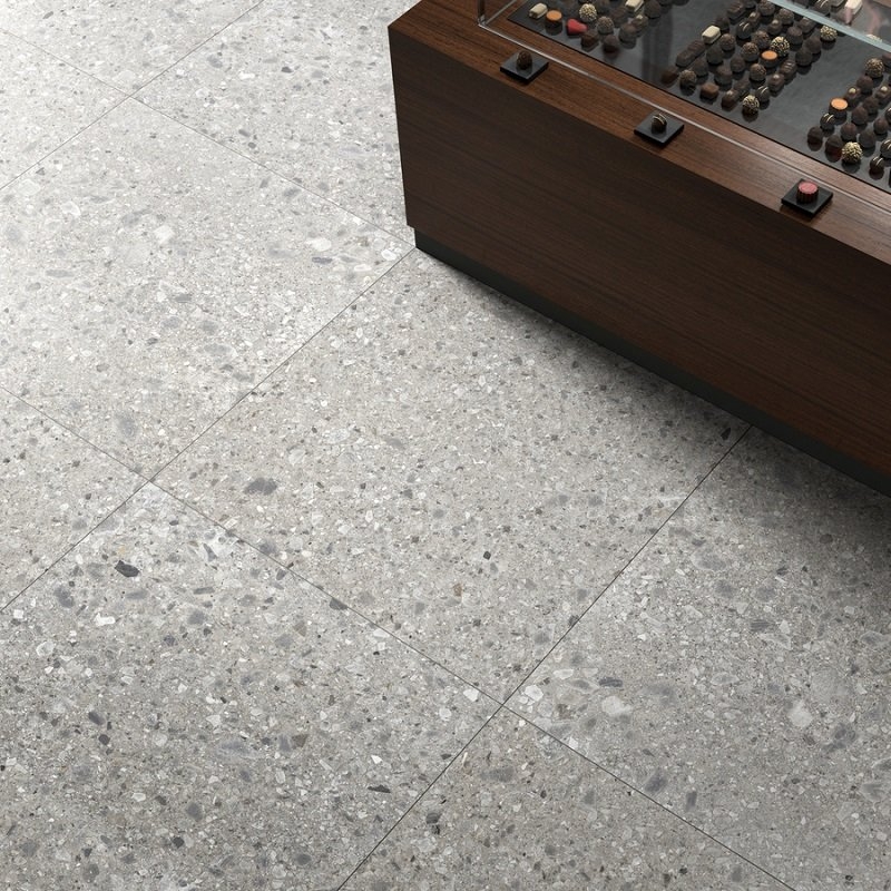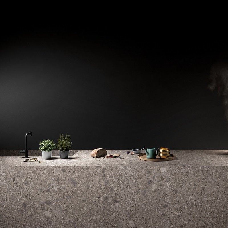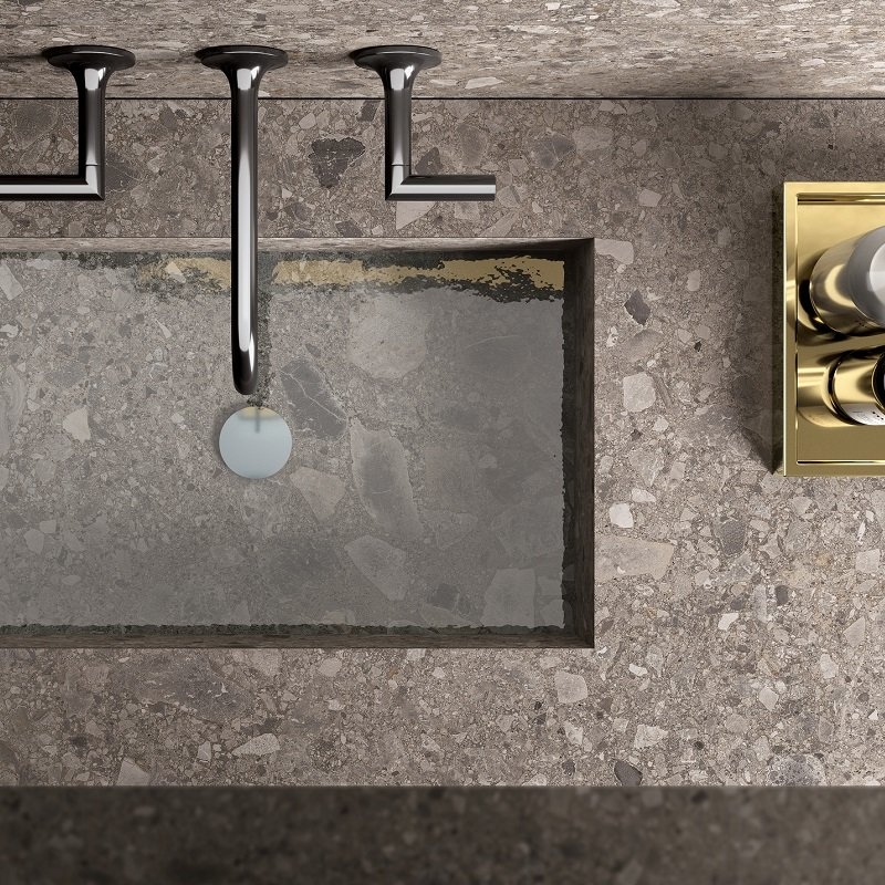 Le Carrelage Pietre d'Iseo Ceppo 120 x 260 cm imite à la perfection la pierre de Lombardie, le Ceppo di Gré, avec ses dessins irréguliers et ses tons sur tons de gris. Ce carrelage grand format est disponible en 120 cm x 260 cm. Ep. 6,5mm.