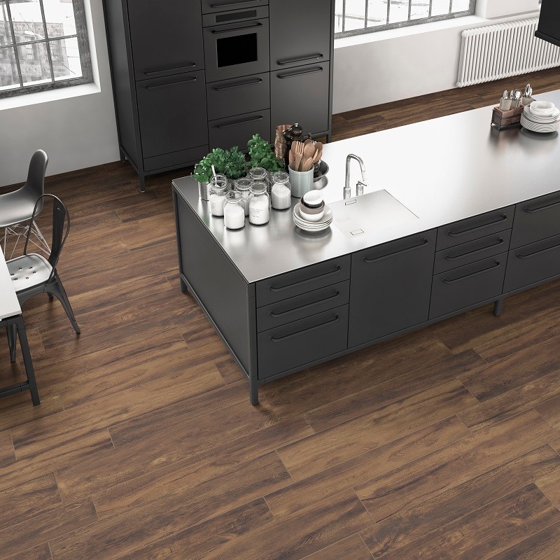 La collection de carrelage Woodlike imitation bois, au généreux format 20cm x 120cm se démarque par sa palette de couleur naturelle caractérisée par des nuances équilibrées, à la finition brossée profonde et par ses variations de tons marquées.