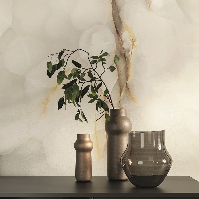 Les cinq tonalités subtiles et raffinées - Onyx Malva, Miele, Perla, Giada et Turchese - s'adaptent à tous les styles, du plus classique au plus contemporain. Associez-les à d'autres matériaux afin de créer des ambiances uniques et personnalisées. La finition, au choix mate, brillante ou Silktech, apporte une touche finale à votre décoration.