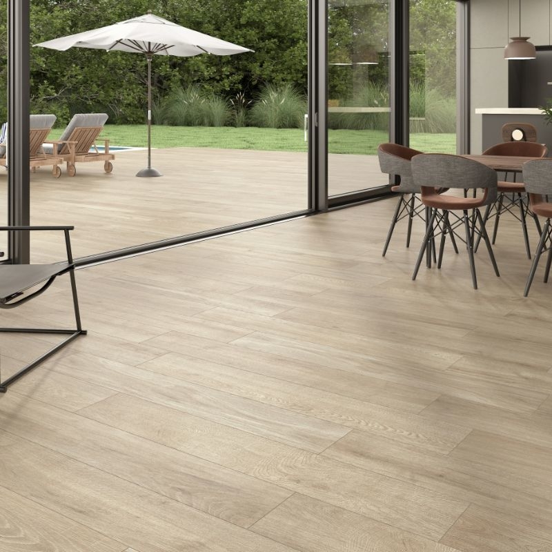 Grâce à leur surface texturée et leur bord rectifié, les carreaux Berry permettent de créer des sols élégants et réalistes, avec un effet bois naturel et chaleureux, tout en offrant durabilité et facilité d'entretien.