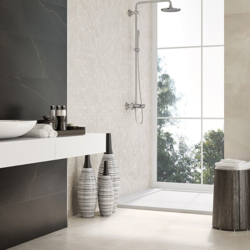 Les deux couleurs se déclinent dans une variété de formats, permettant une combinaison harmonieuse sur sols et murs, pour des compositions originales et élégantes.