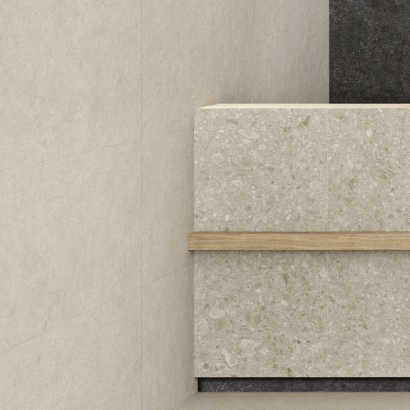 Disponible en formats multiples – 120x120, 90x90, 90x90x2 cm (Kalksten Extrem), 60x120, 60x60 et 30x60 – il s’adapte à toutes les configurations, du salon à la salle de bain. Les formats sont rectifiés, permettant une pose avec joints fins et réguliers pour un résultat élégant.