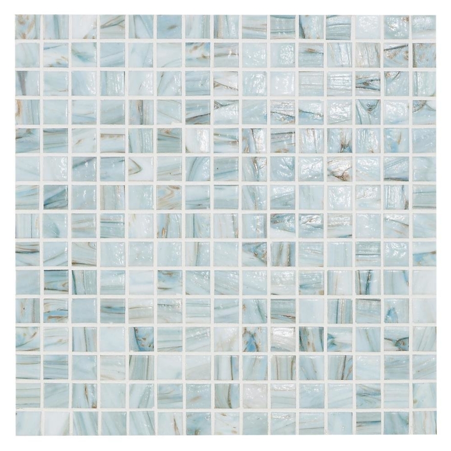 Les carreaux mosaïque pâte de verre bleu pâle doré pour donner un spectacle de couleur et de style dans la salle de bain, la cuisine ou la douche et les WC. Les petits carreaux aux lignes blanches se mêlent aux images contenues dans les cases. Le tout sur une surface de plus de trente centimètres de côté.