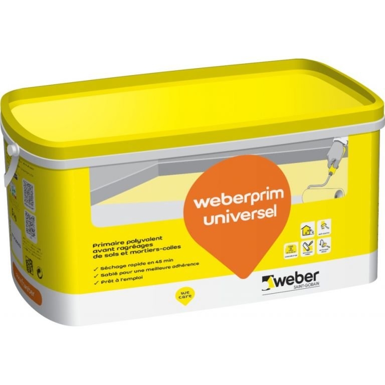 Pour la préparation des supports poreux et fermés avant l’application des ragréages de sols, des chapes, des mortiers colles ou de Webersys Protec et Webersys hydro stop utilisez ce primaire d'accrochage Weberprim universel.