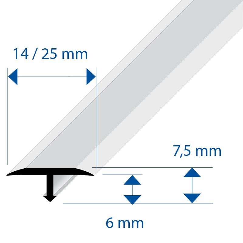 Si vous possédez un carrelage différent avec une pose qui a été réalisée au même niveau, ou un combiné entre le carrelage et parquet, le profilé plat est la solution parfaite car il ne mesure que 6 mm de profondeur et 14 mm pour recouvrir votre joint.