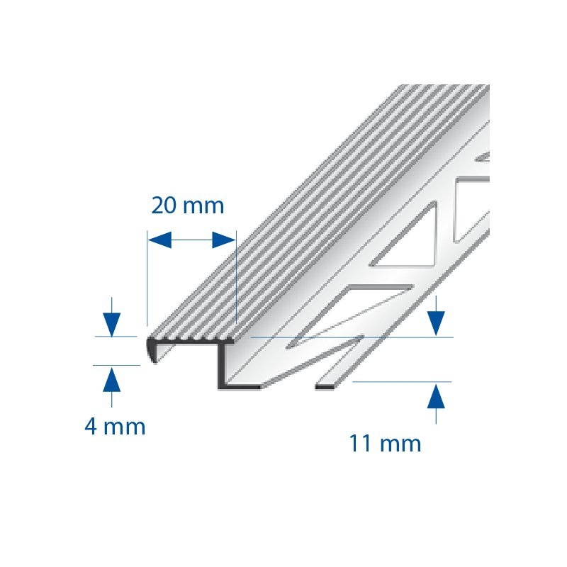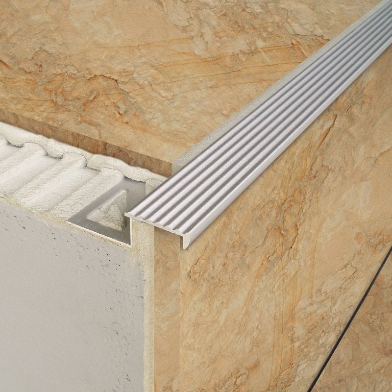Profilé nez-de-marche carrelage bord extrié en aluminium chrome