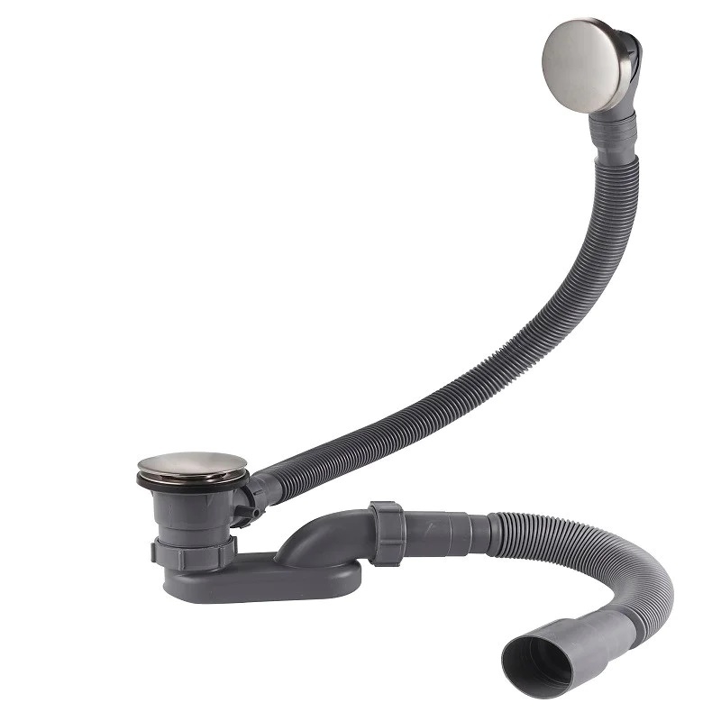 Disponible en chrome brossé, il suit la tendance actuelle de finitions de robinetterie. Ce modèle se compose d'une bonde, d'un siphon, d'un trop-plein et d'un flexible en PVC de 60 cm. Il inclut également un panier de nettoyage pour un entretien facile.