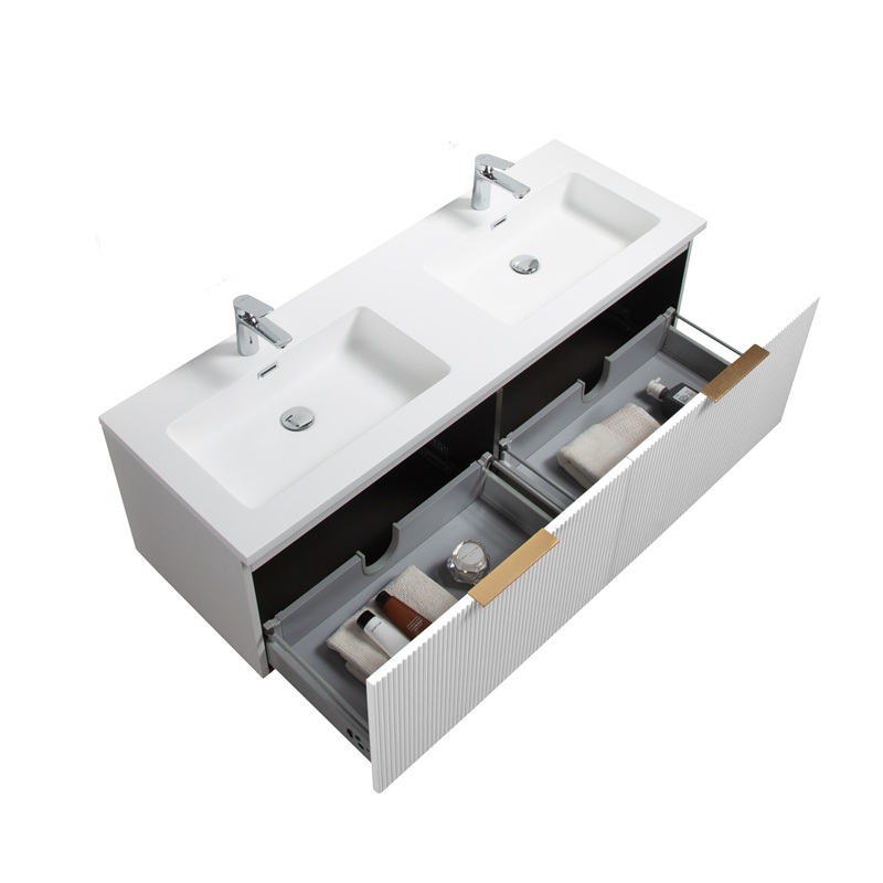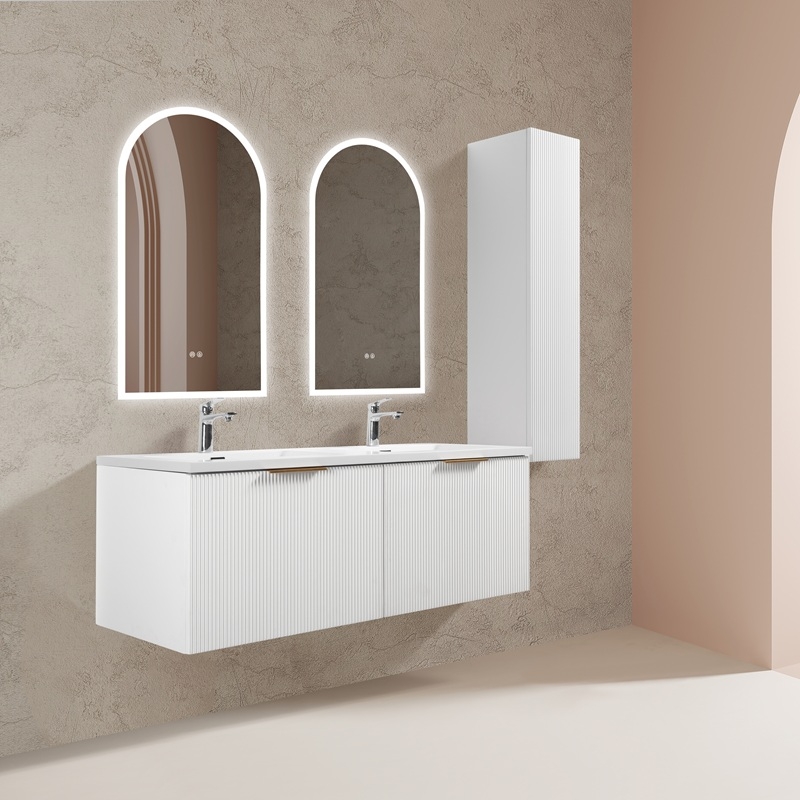 Élégance, fonctionnalité et personnalisation définissent le meuble Stripes blanc mat de 140 cm. Sa façade cannelée, ses tiroirs robustes et ses options de personnalisation en font un choix idéal pour une salle de bain moderne.