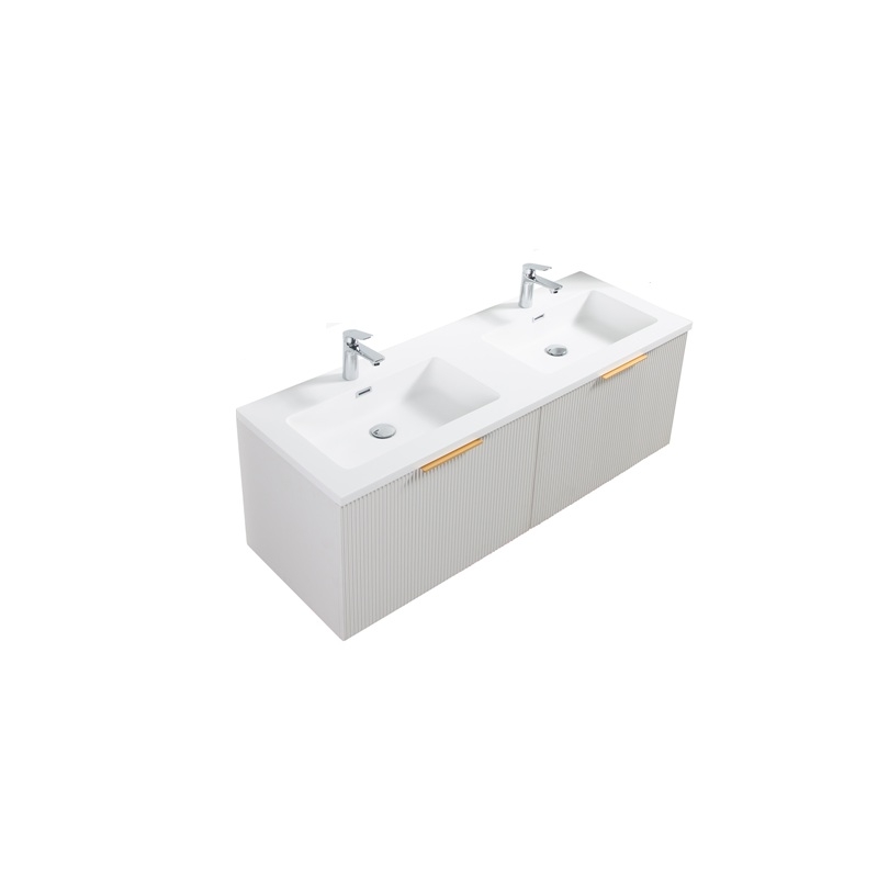 Dynamisez votre salle de bain avec le meuble Stripes blanc mat de 140 cm, une pièce qui conjugue texture et fonctionnalité. Sa façade cannelée en relief, tendance actuelle, crée un jeu d'ombres sophistiqué, apportant originalité et modernité à votre espace. Les stries ondulées en 3D transforment votre salle de bain en un lieu de design contemporain.