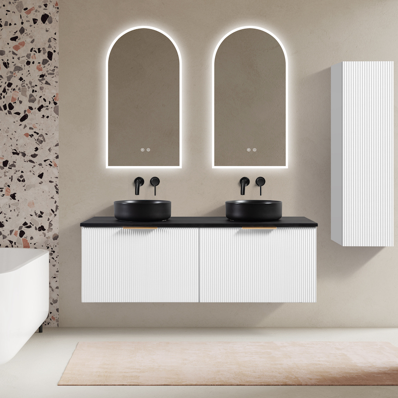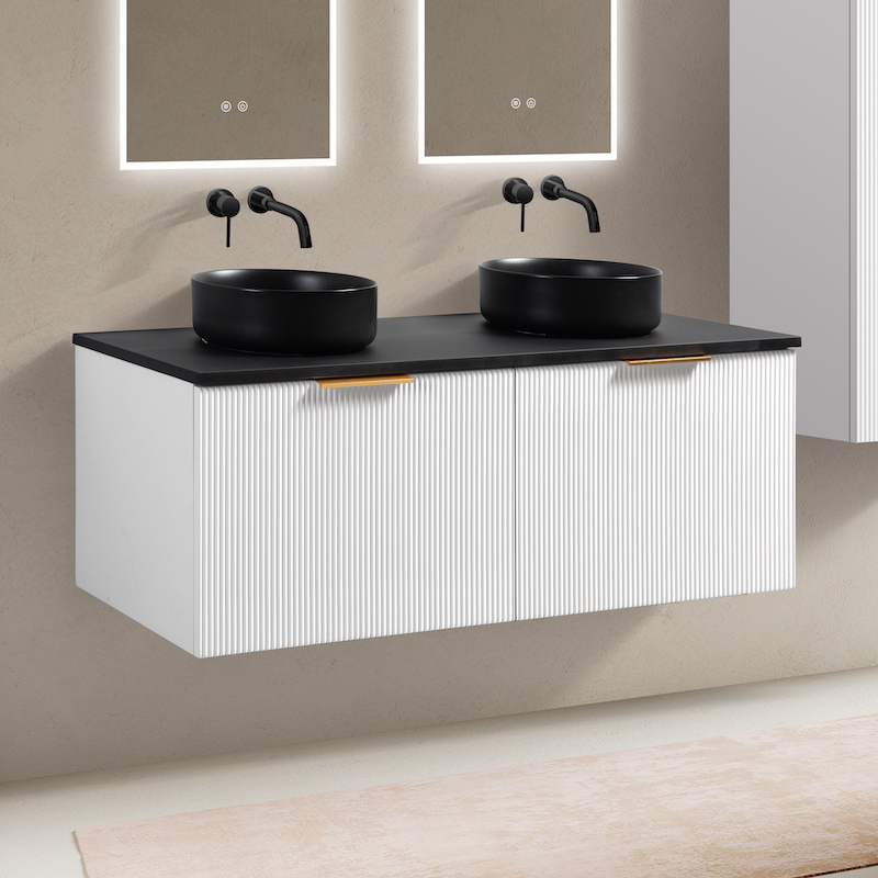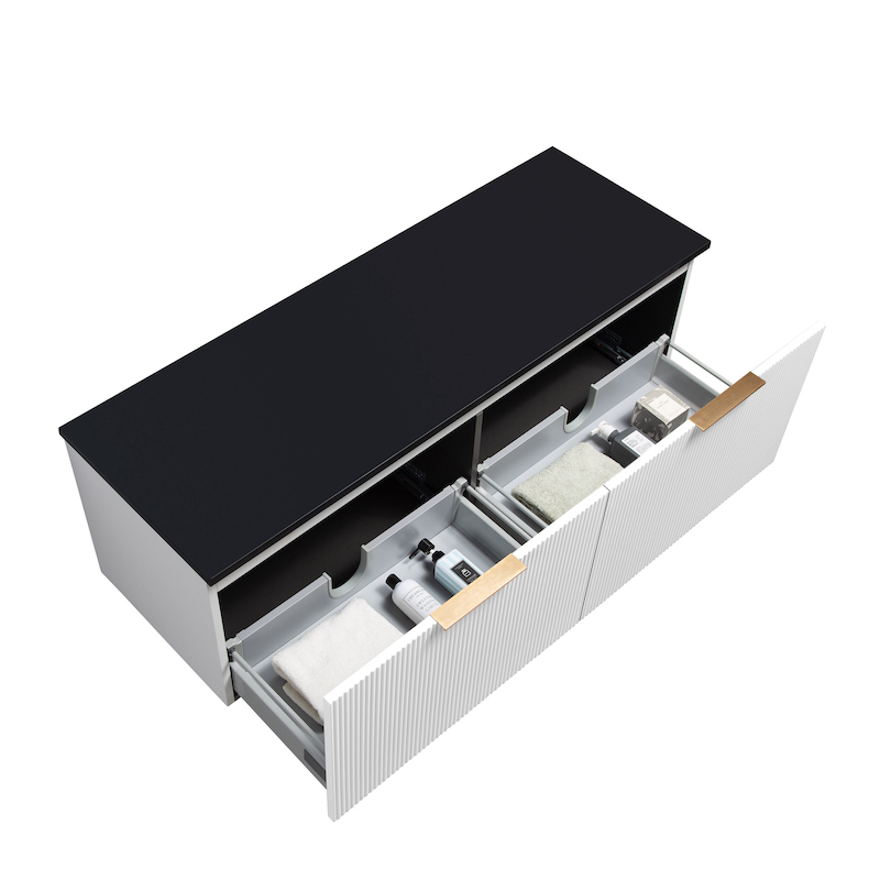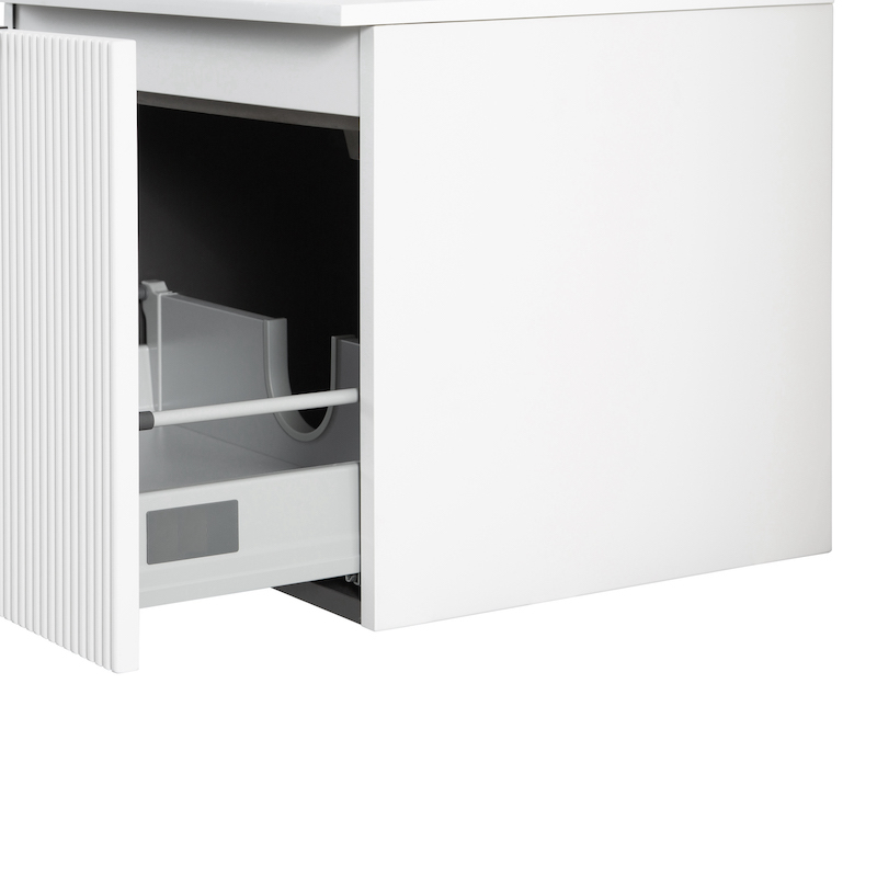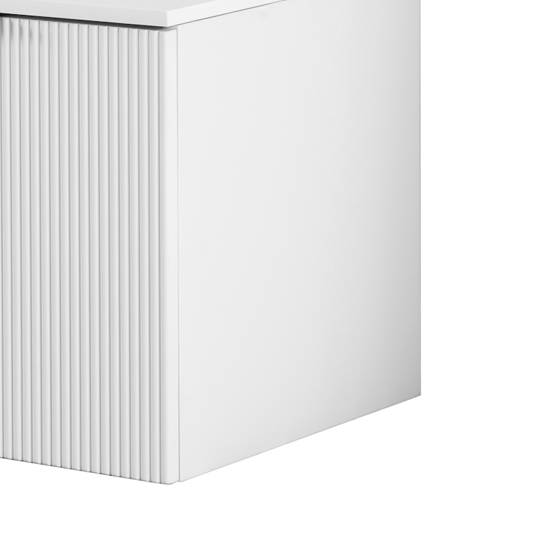 Avec sa façade cannelée en relief, le meuble Stripes blanc de 140 cm apporte une touche de modernité à toute salle de bain.