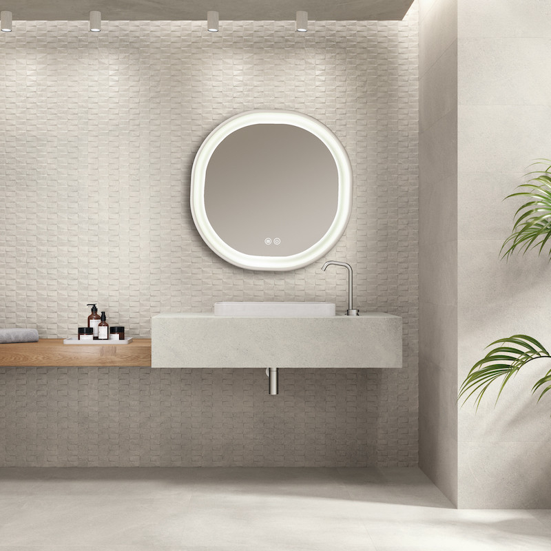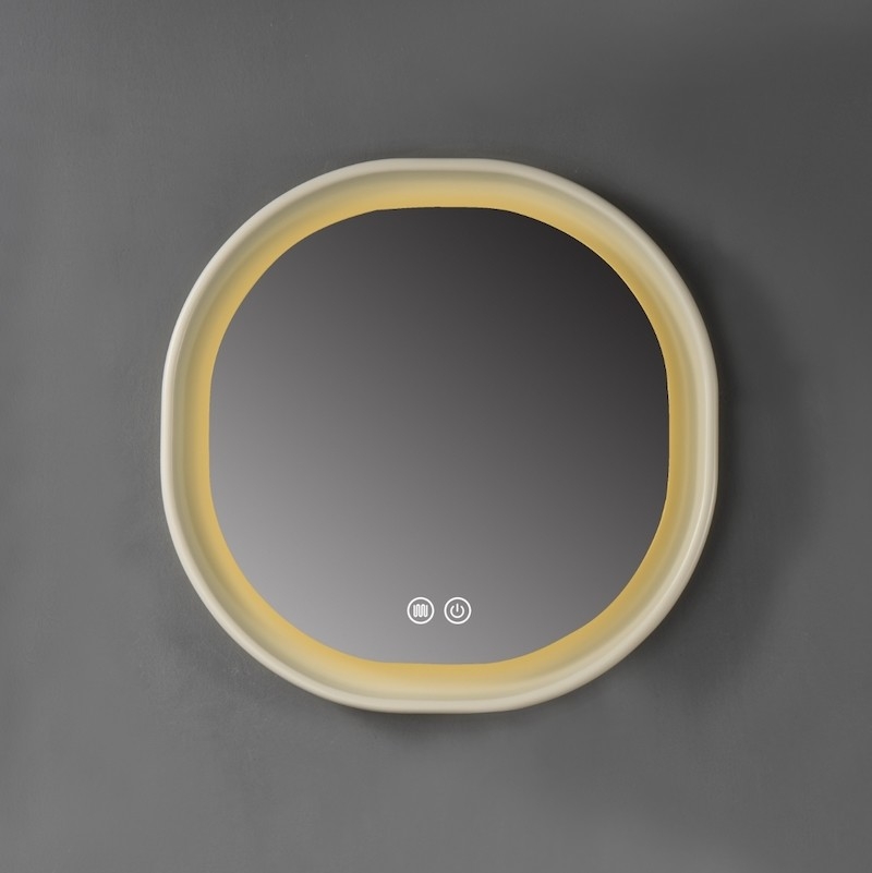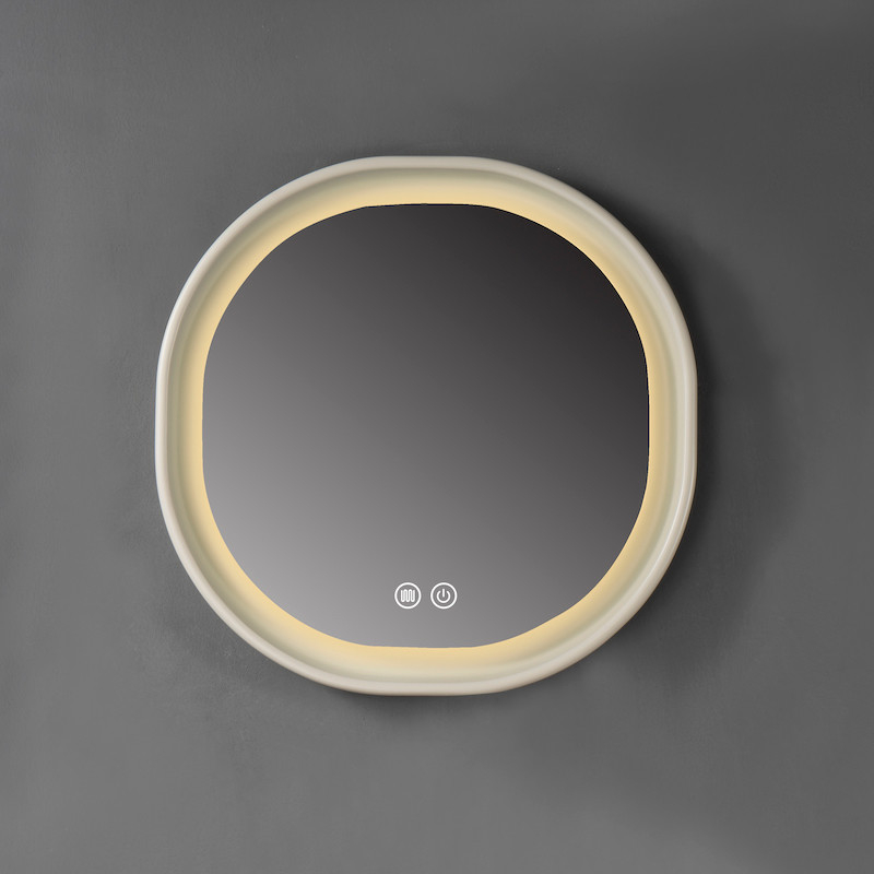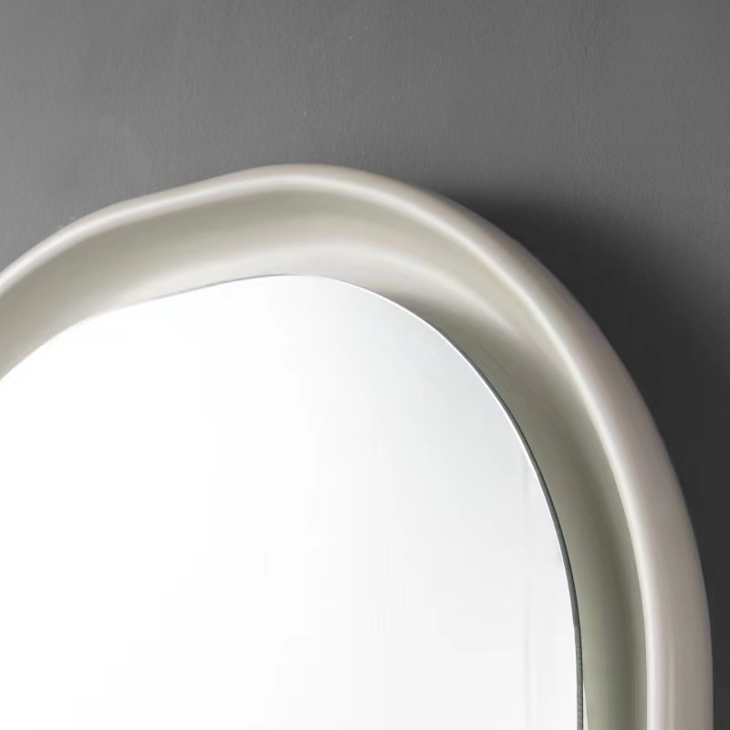 Arborant une silhouette ronde aux courbes asymétriques, ce miroir incarne la tendance des designs organiques. Son cadre extérieur d'un élégant beige argile s'inscrit dans la vague contemporaine des teintes terreuses naturelles en béton ciré, apportant une chaleur subtile à votre salle de bain.