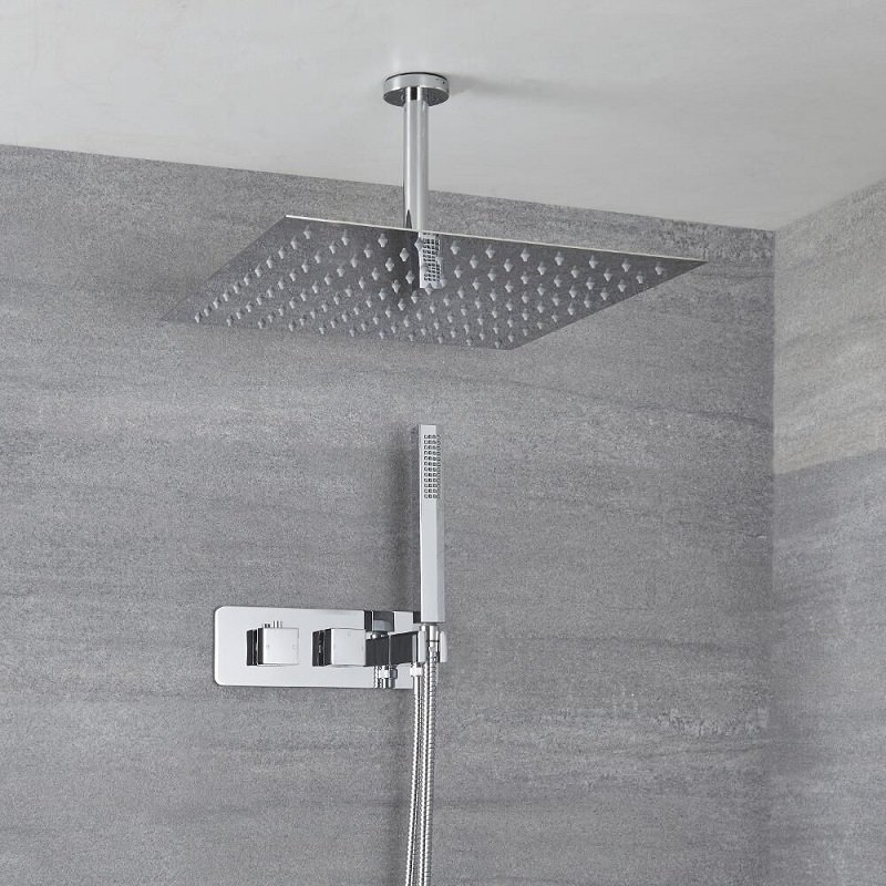 En quête d'une tête de douche carrée pour votre douche? Essayez ce pommeau de douche plafond carré Slim 50 cm Quadra en acier inoxydable.