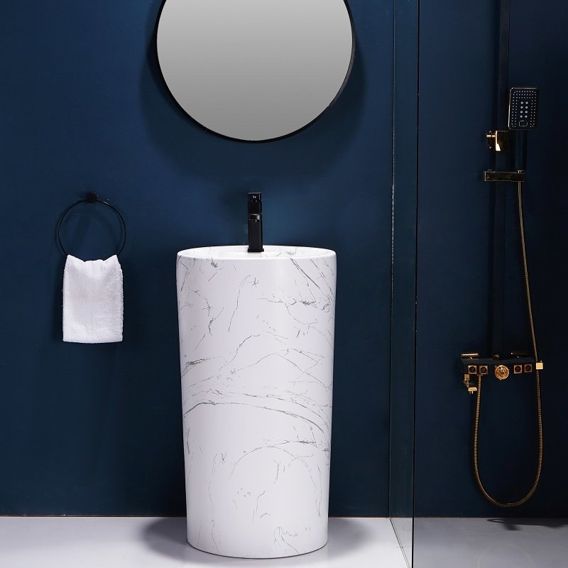 Ce lavabo totem effet marbre blanc en céramique a l'avantage d'être d'une grande durabilité. Il résiste aux éclats et aux fissures.