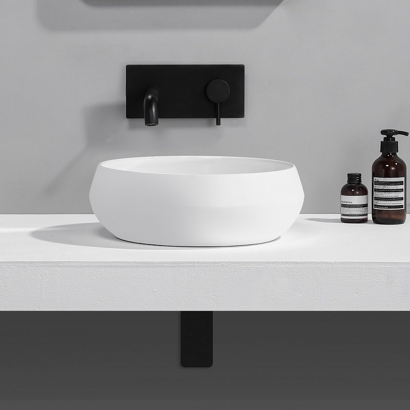 La vasque à poser ronde blanc mat Neptune 36 cm peut s'installer sur n'importe quel type de plan à condition qu'il soit stable et assez robuste pour supporter une vasque de 8 kg. Il peut s'agir d' une planche de bois, un plan en marbre, ou encore un meuble de récupération. La petite vasque Neptune ronde mesure 36 cm de diamètre, si vous avez très peu d'espace, vous pouvez même l'installer dans un angle.