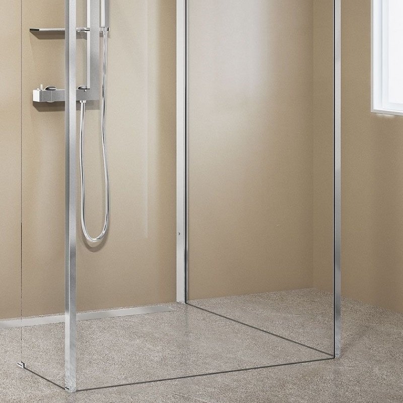 Vous devez en premier lieu choisir les deux premières parois qui construiront votre largeur, cette dernière peut être choisie entre 80 cm et 100 cm de large. Elles seront équipées de profilés en aluminium qui seront à fixer sur le mur. La hauteur de 200 cm et l'épaisseur de 8 mm assurent la solidité et la qualité du produit.