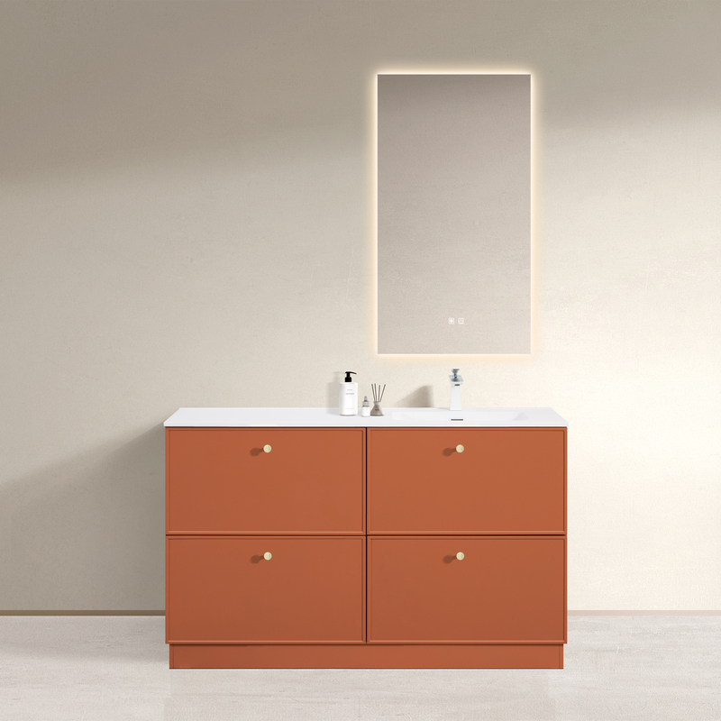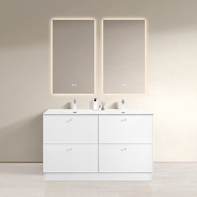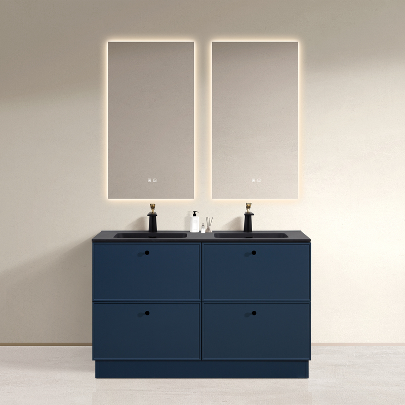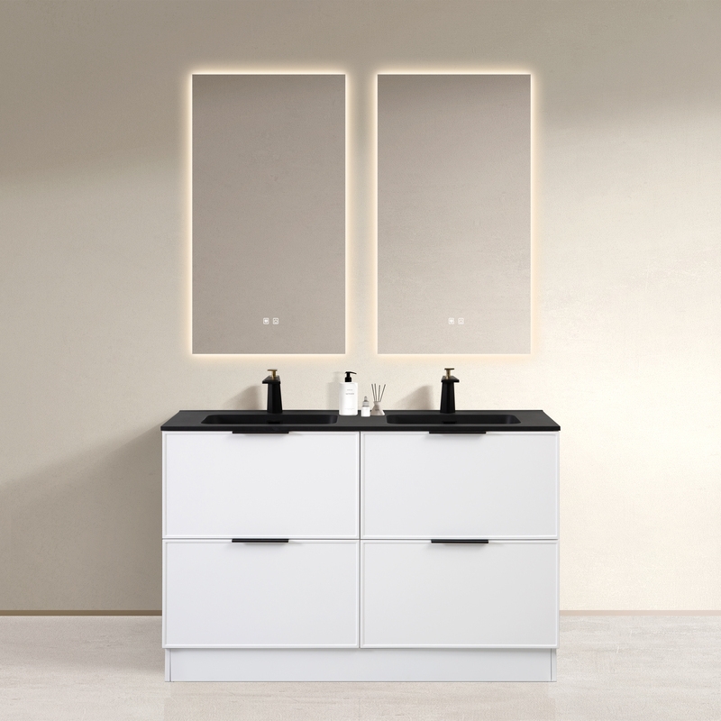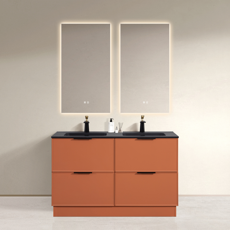 Créez un meuble qui vous ressemble : Feety Color est personnalisable en taille, coloris, poignées et vasque. Vasque simple ou double, de 70 et 140 cm.