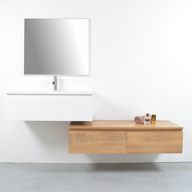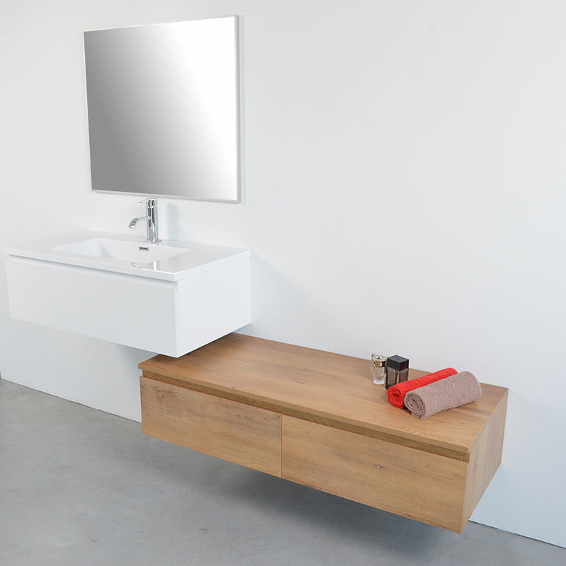 Cet ensemble meuble salle de bain SHEA confort est un pack conçu et adapté pour des salles de bains familiales ou des suites parentales. Composé d’un meuble SHEA avec une vasque encastrée de 90 cm et d’un meuble bas décalé SHEA de 120 cm, il rassemble toutes les qualités requises pour améliorer votre mode de vie et l'organisation de toute la maisonnée.