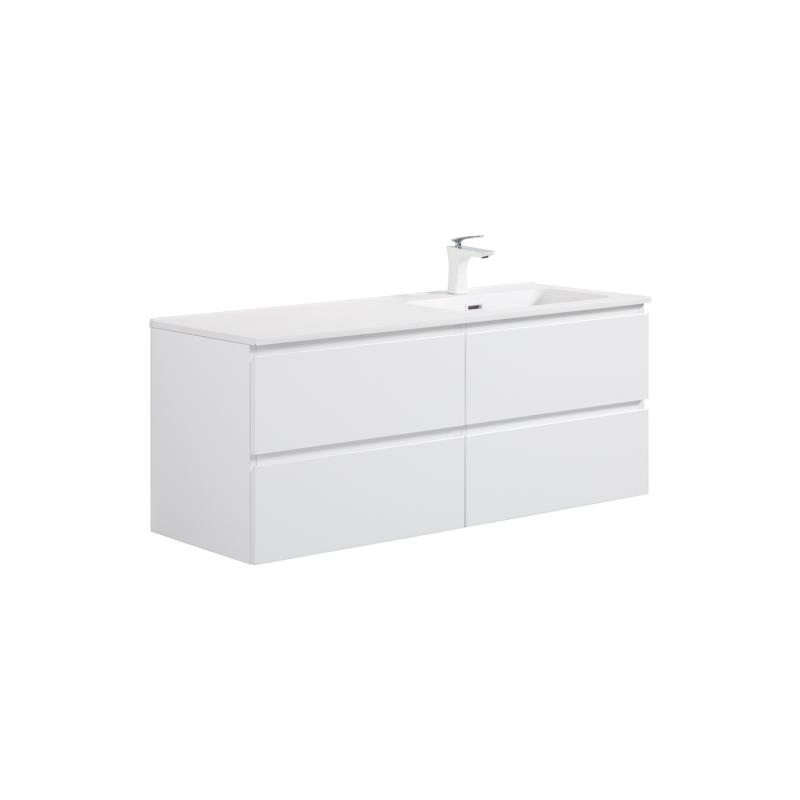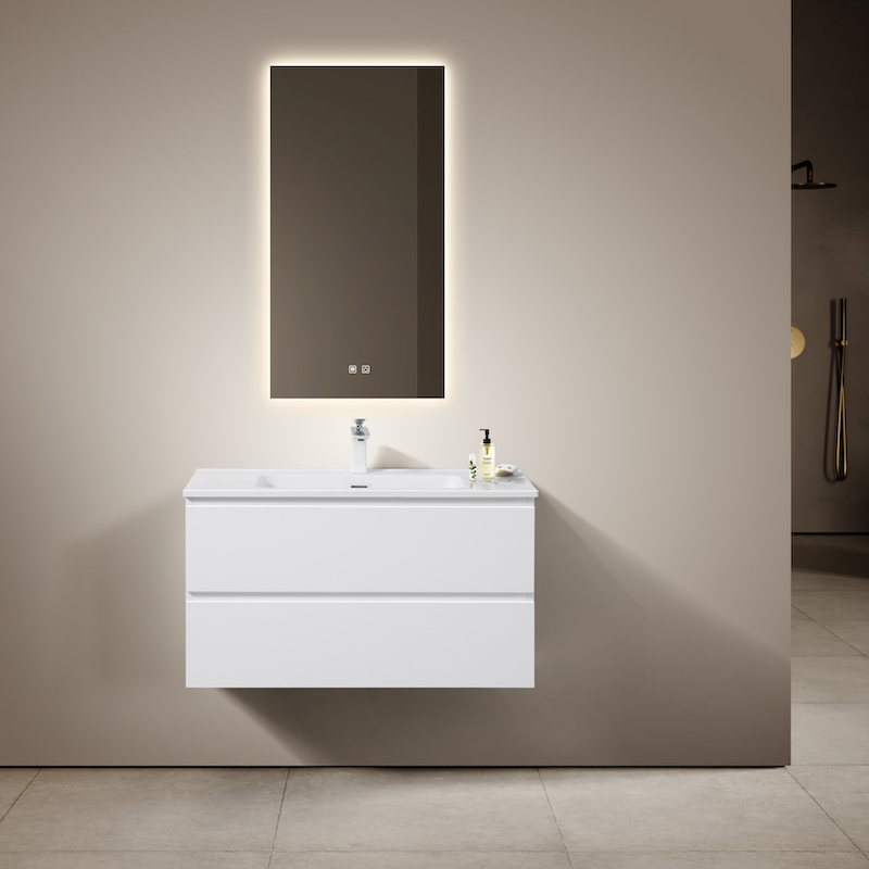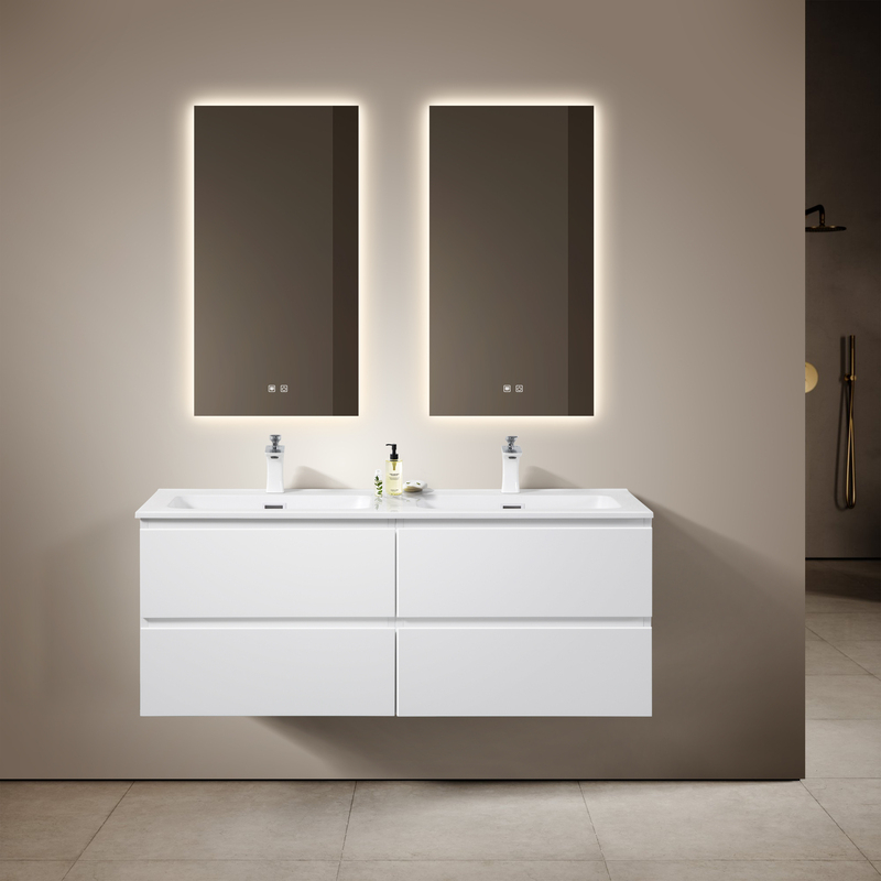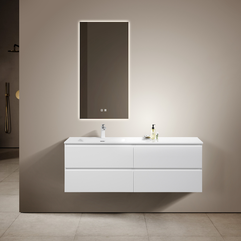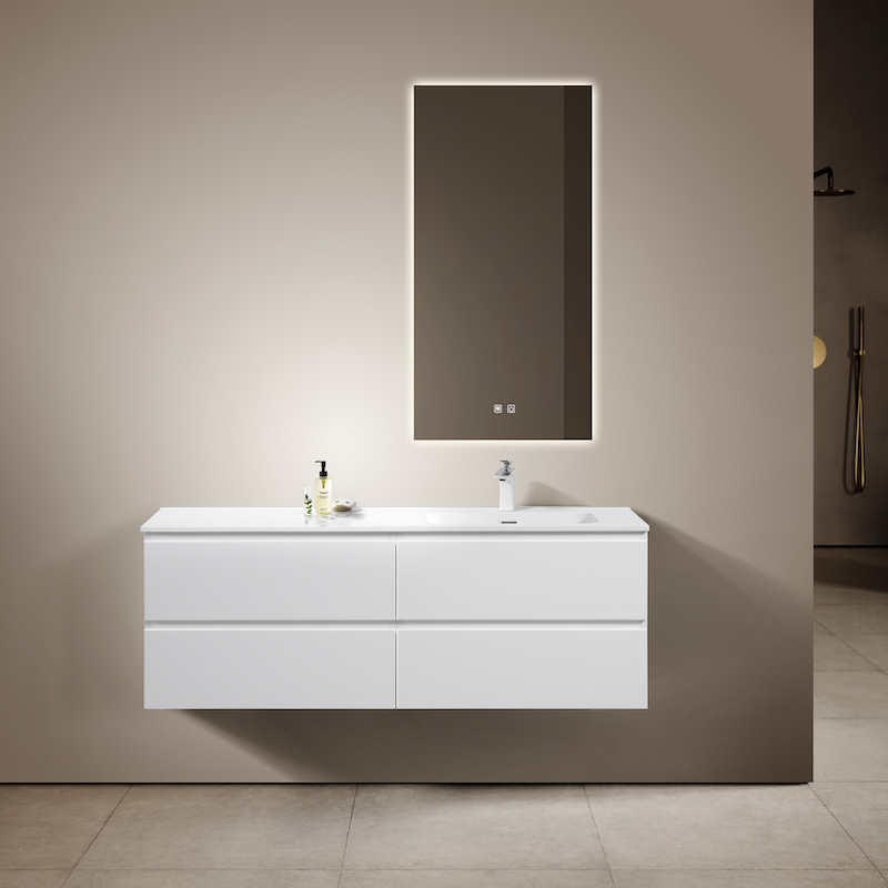 Le meuble de salle de bain Alia est un modèle suspendu, disponible en plusieurs largeurs, de 60 à 180 cm, pour s’adapter aussi bien aux petites salles de bain qu’aux grands volumes. Il existe en version simple vasque, double vasque, ou avec vasque excentrée à gauche ou à droite selon les besoins.