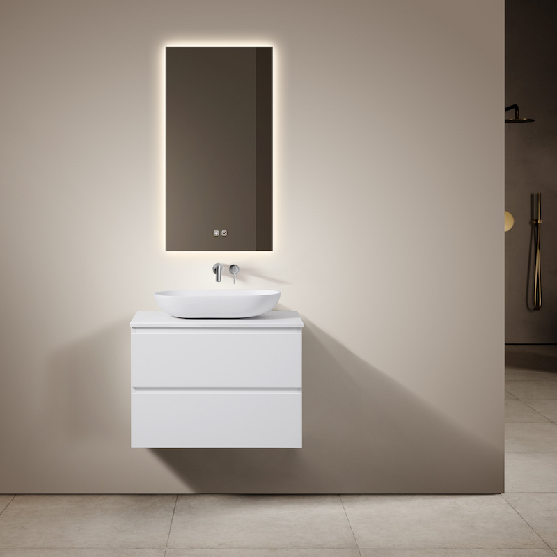 Vous cherchez un petit meuble de salle de bain peu encombrant ? Optez pour le meuble Alia, disponible avec vasque encastrée ou plan, selon vos préférences.