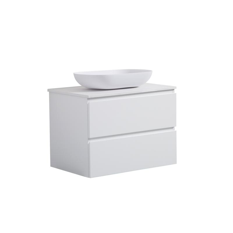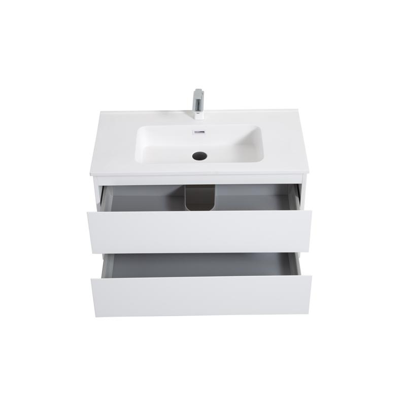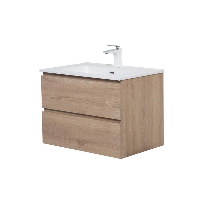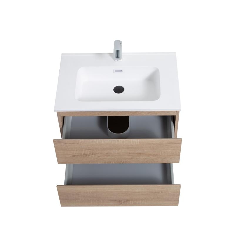 Le meuble Alia est proposé avec une vasque en résine de qualité, dotée d’un percement pour mitigeur et d’un trop-plein assorti pour un ensemble harmonieux.