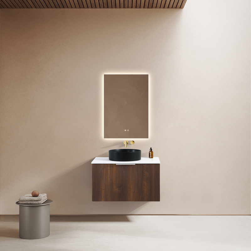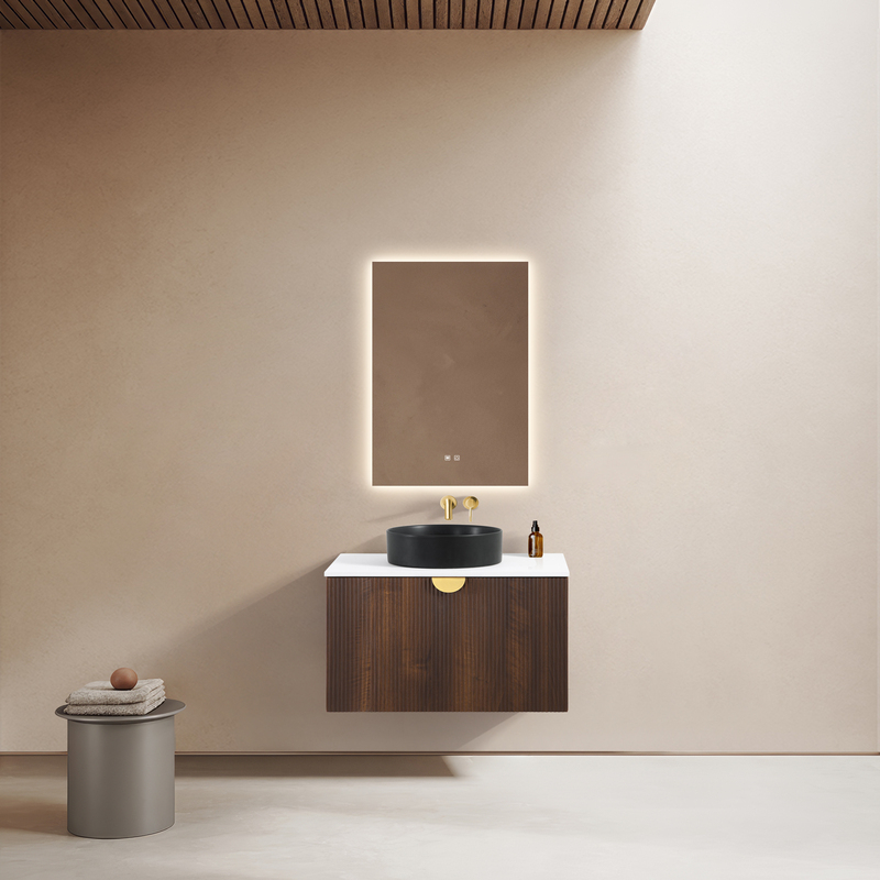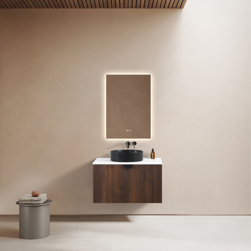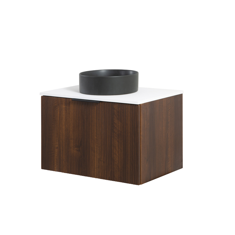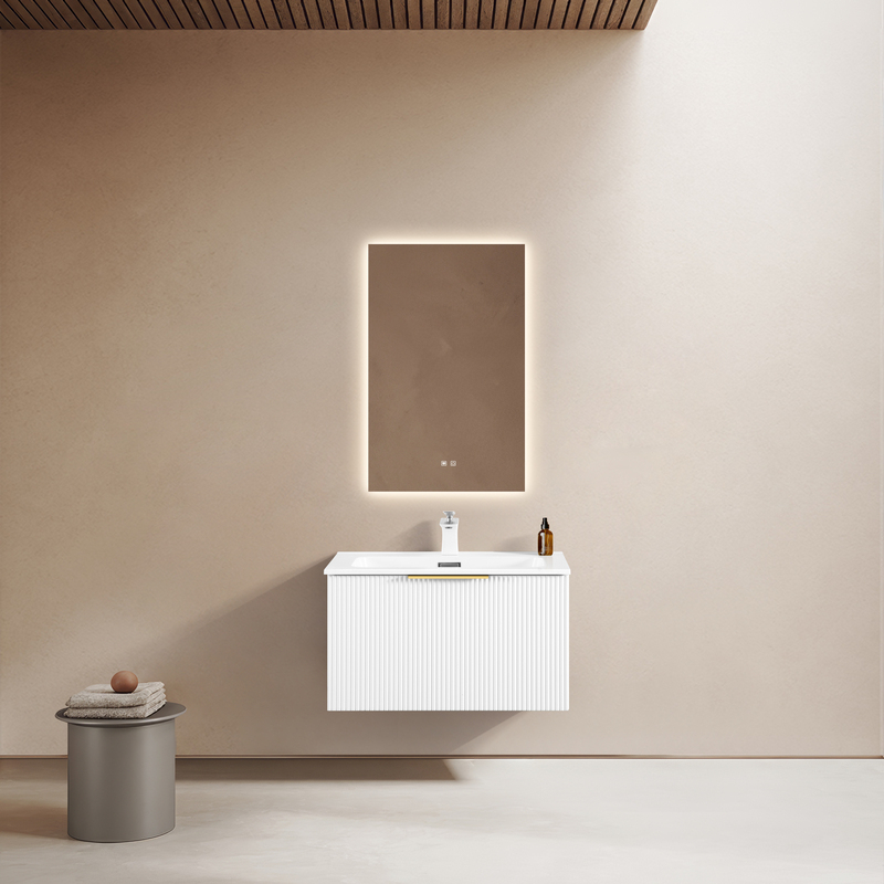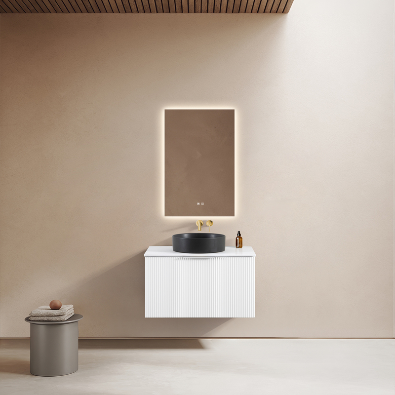 Envie d’un petit meuble cannelé ? Stripes 60 ou 70 cm se décline en 3 coloris, avec 2 modèles de poignées et plusieurs finitions de vasque.