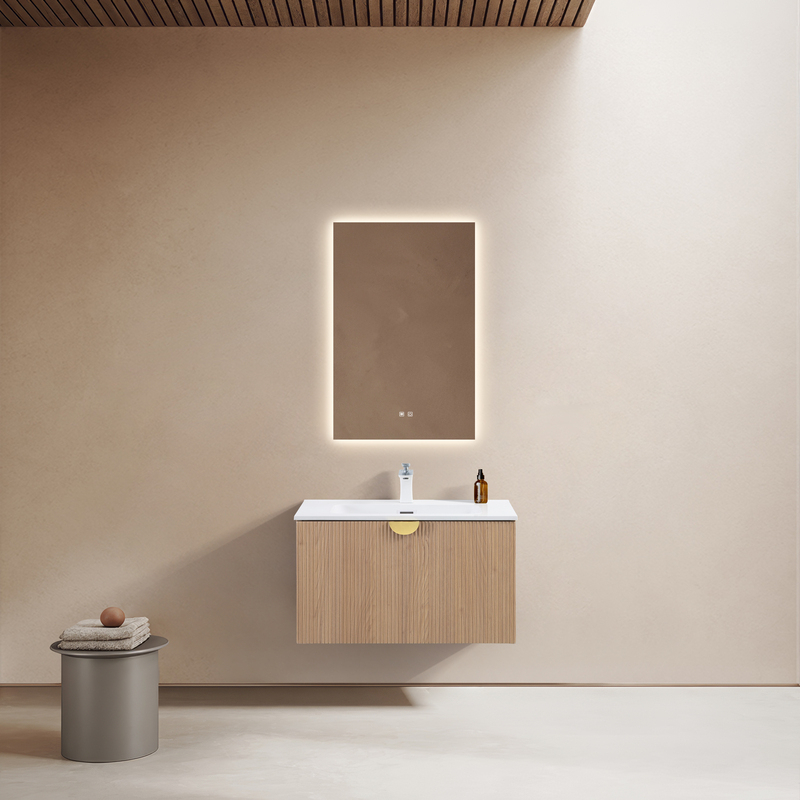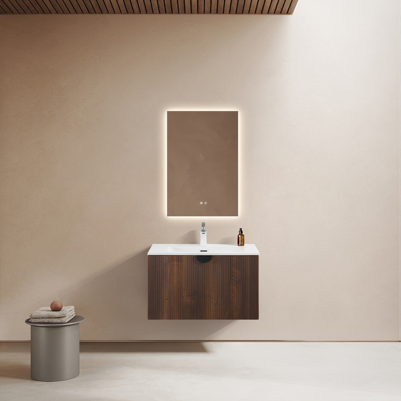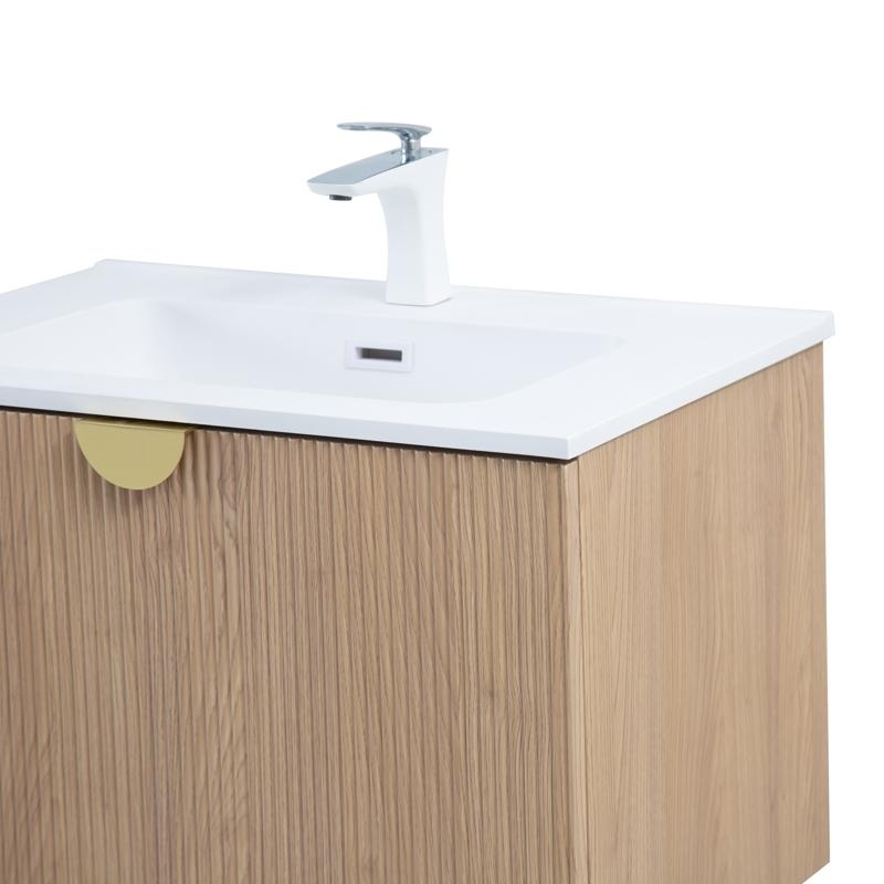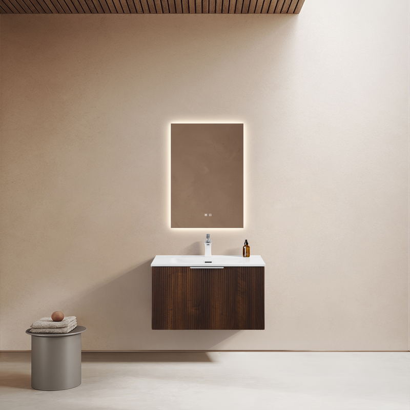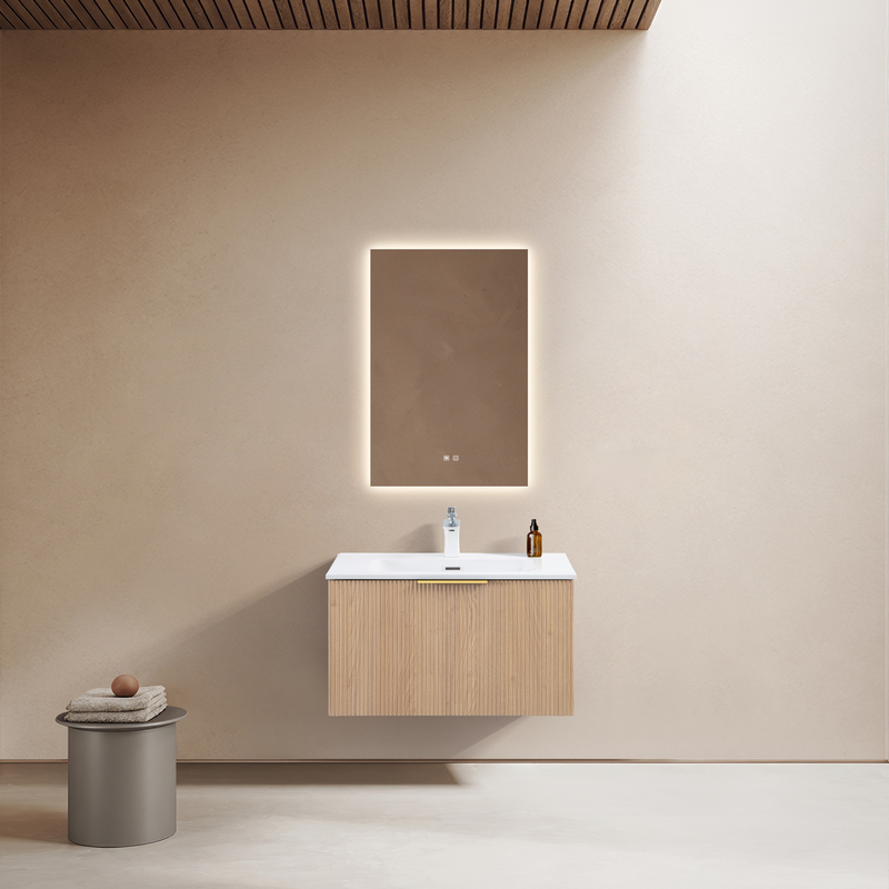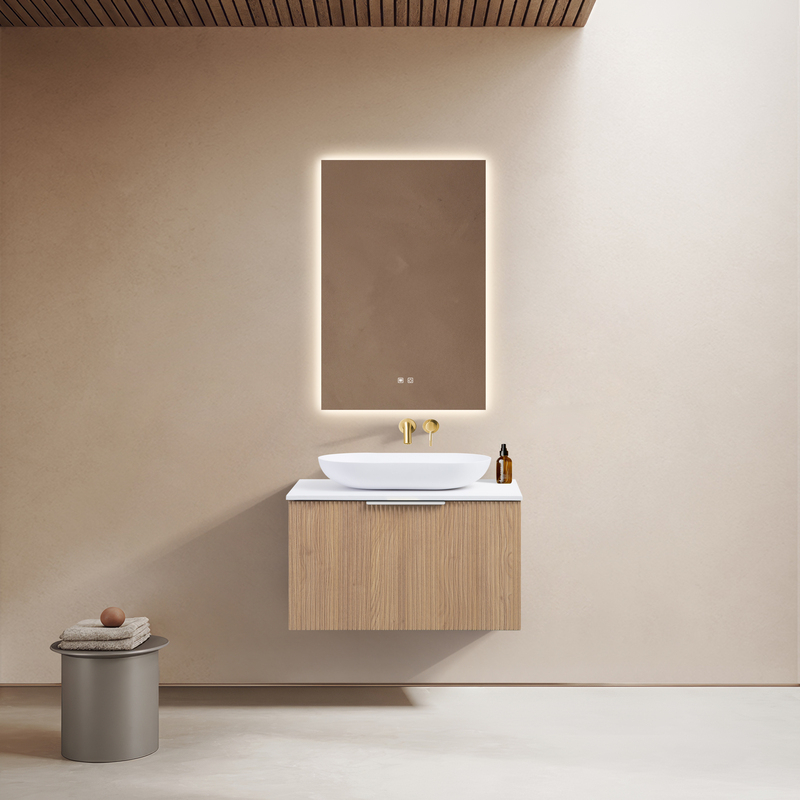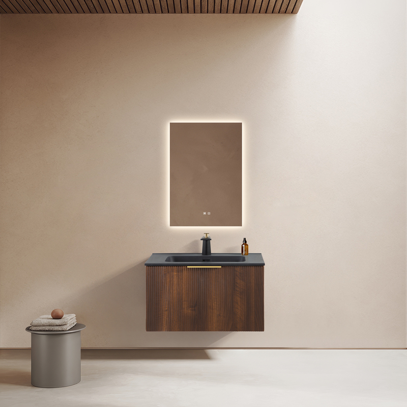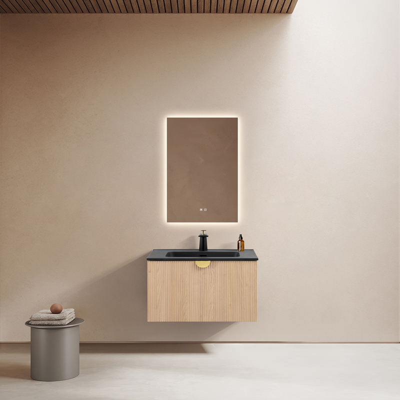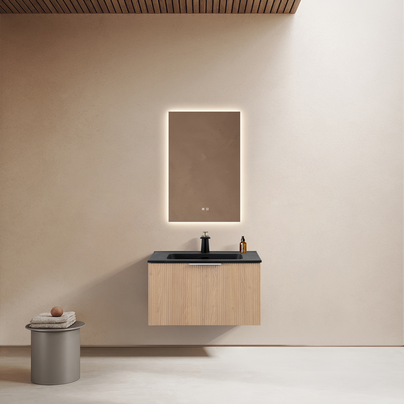 Le meuble de salle de bain Stripes se décline en 60 ou 70 cm, des formats idéaux pour les espaces réduits. Suspendu et livré entièrement monté, il se fixe rapidement grâce à son système de fixation réglable, pour un alignement impeccable même sur un mur irrégulier.