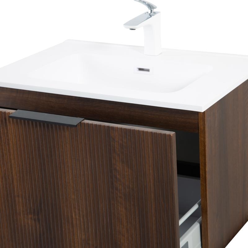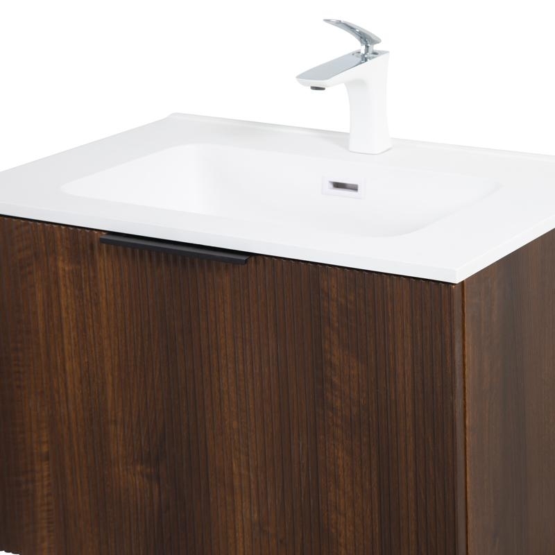 Choisissez parmi trois finitions : blanc, chêne ou noyer. Sa façade est structurée par un motif cannelé en relief, apportant un style graphique et moderne tout en restant facile à nettoyer.