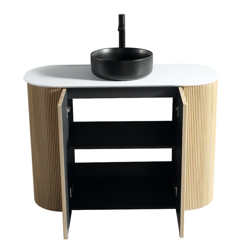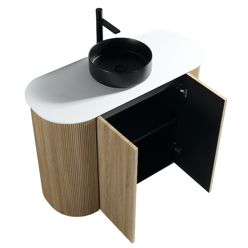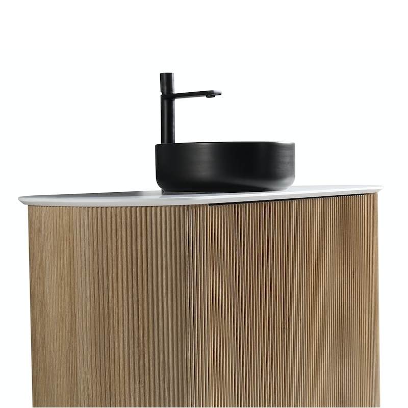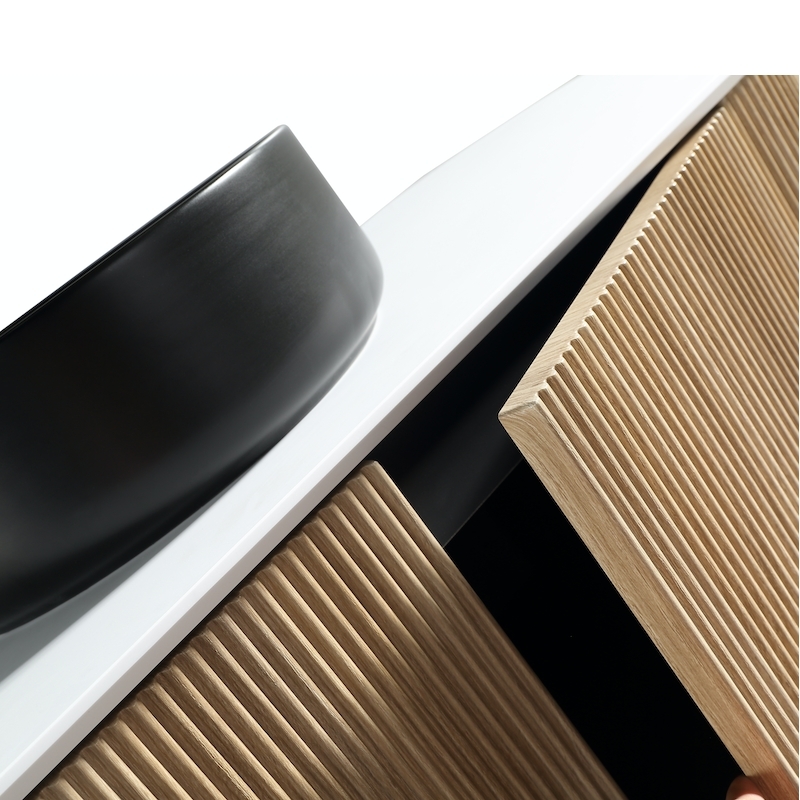 Pratique et fonctionnel, ce meuble offre de nombreux avantages : installation rapide sans fixation murale, rangement optimisé sur toute la hauteur. Derrière ses deux portes à fermeture amortie, il renferme deux étagères spacieuses pour organiser vos accessoires de toilette. Le plan de toilette en quartz blanc satiné, ultra slim de 1,6 cm avec rebord biseauté est non percé (il se perce facilement à l’aide d’une scie cloche), il s’adapte à une vasque à poser et au robinet de votre choix, mural ou sur plage.
