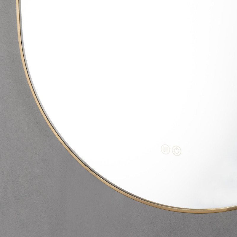 Miroir de salle de bain rétroéclairé antibuée tactile Falbala. Dimensions : 60 x 85 x 3 cm. Disponible en 2 couleurs : or brossé et noir mat.