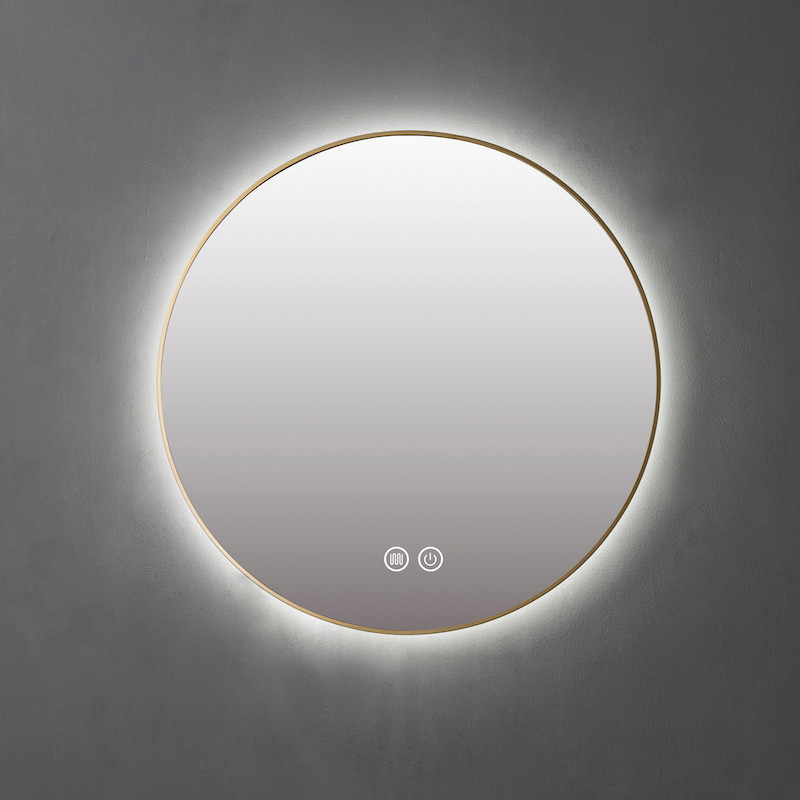 Miroir rond noir et doré 70 cm LED à fixer au mur