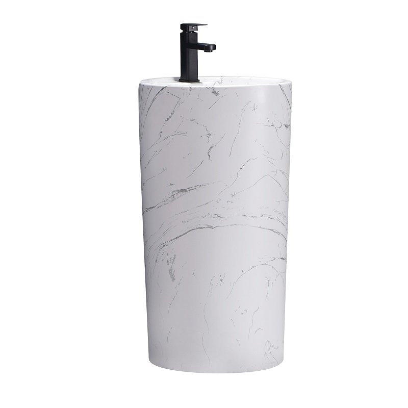 Vasque colonne ronde Totem effet marbre blanc mat Carrara