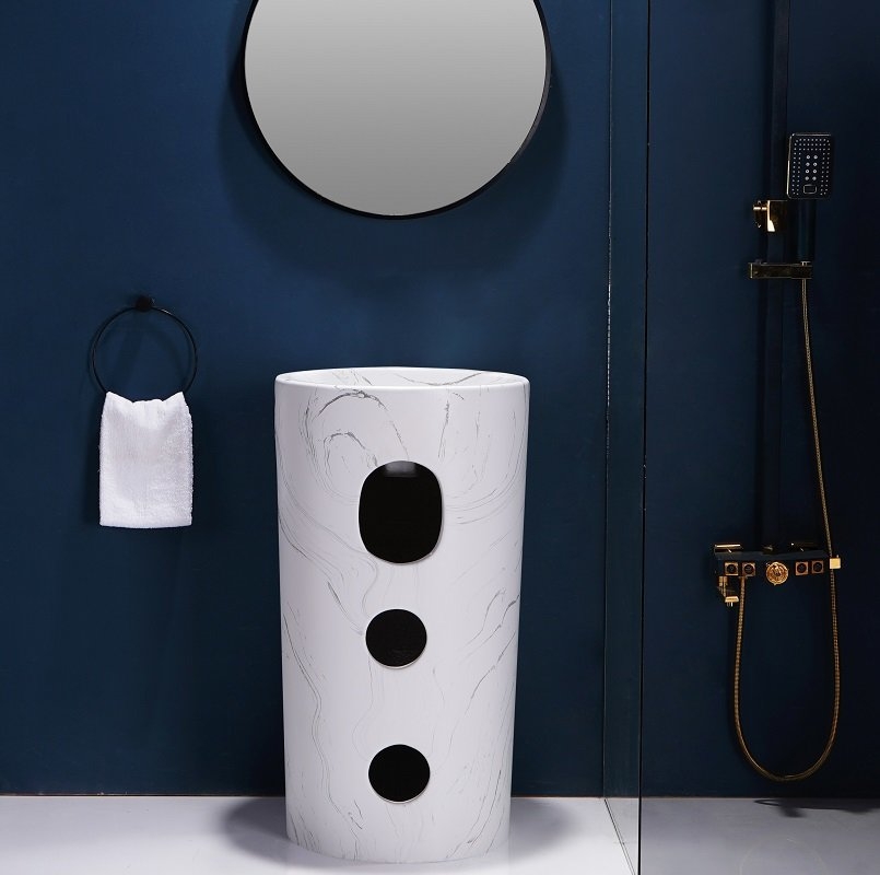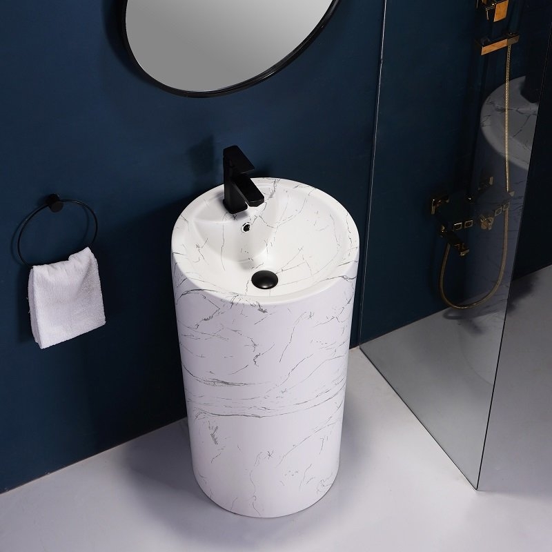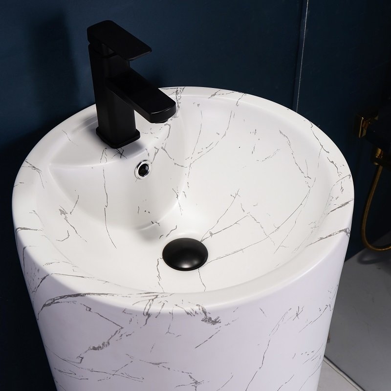 Ce lavabo totem effet marbre blanc en céramique a l'avantage d'être d'une grande durabilité. Il résiste aux éclats et aux fissures.