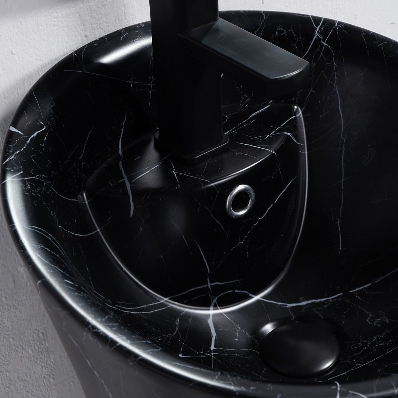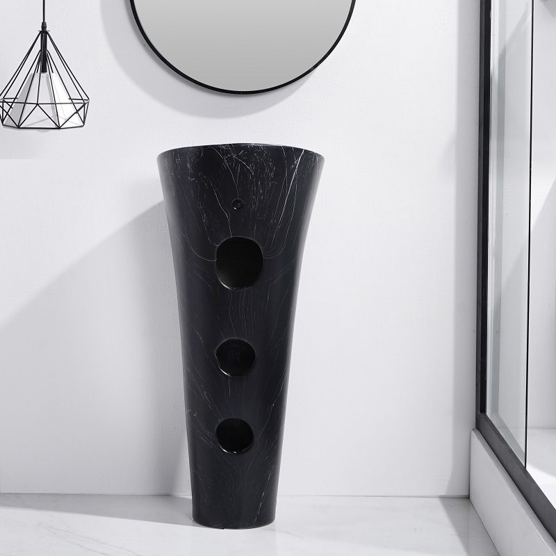 Vasque colonne ronde Totem effet marbre noir mat Marquina
