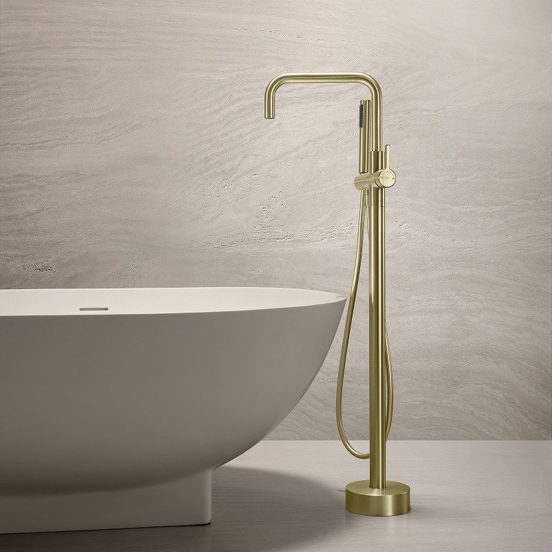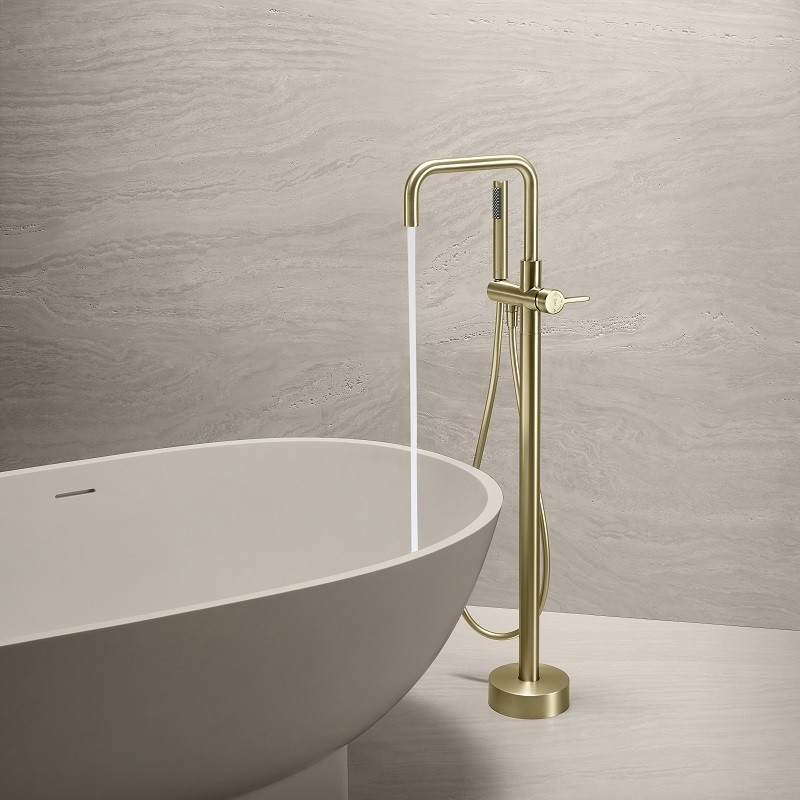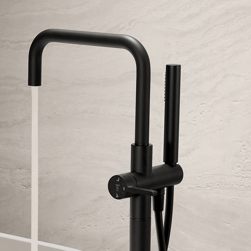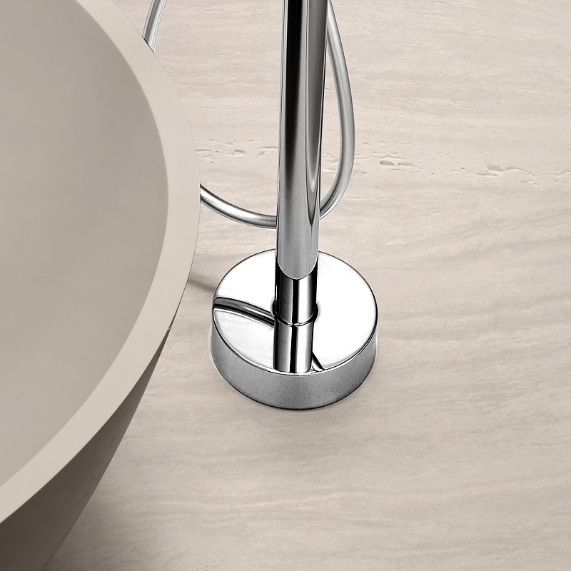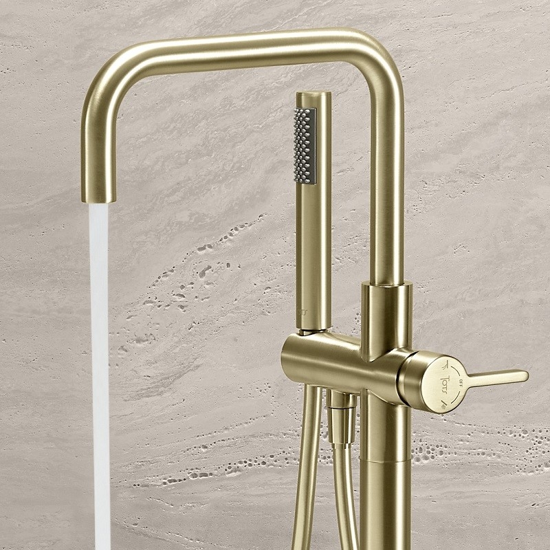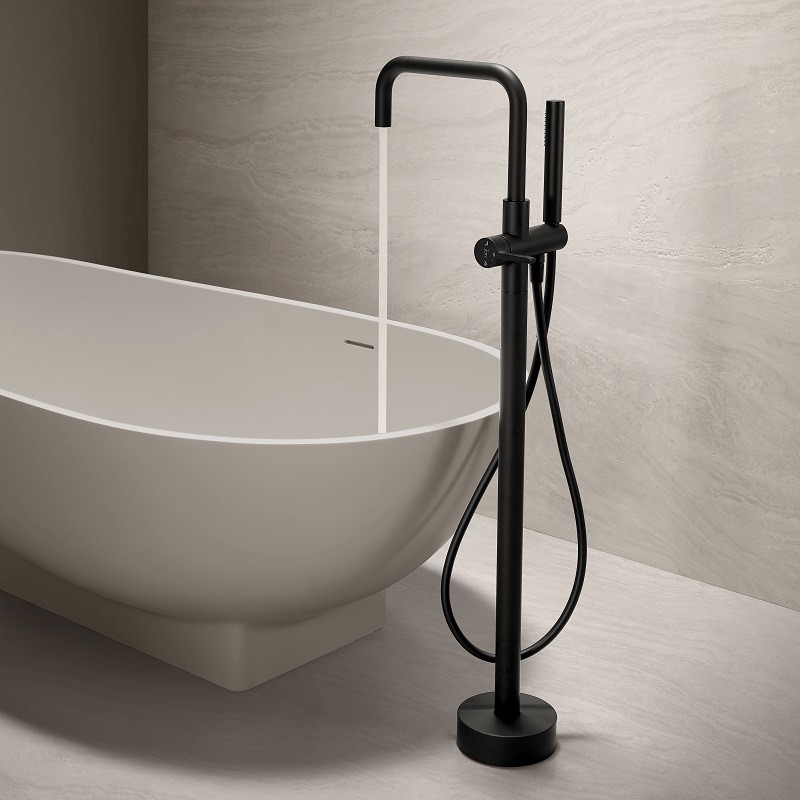 Ce mitigeur sur pied pour baignoire îlot, au design minimaliste et élégant en col de cygne, est composé dune douchette à main et d'un bec de baignoire. Disponible en chrome brillant, noir mat et doré brossé, il allie robustesse et esthétique, parfait pour une salle de bain moderne et raffinée.